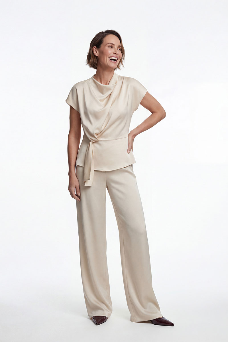 Комфортный костюм из струящегося трикотажного полотна подойдёт как для особого случая, так и на каждый день.
