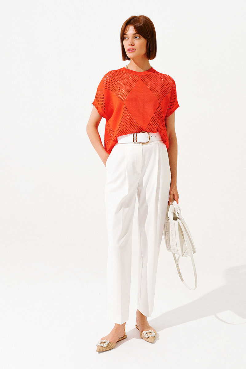 Лёгкий джемпер ажурной вязки.