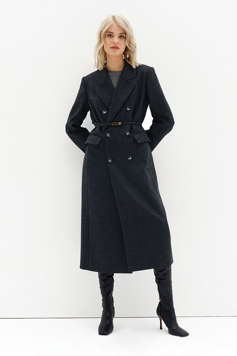 Пальто трендового кроя из премиального полотна на основе шерсти.