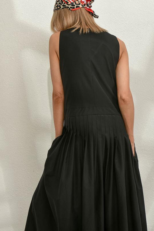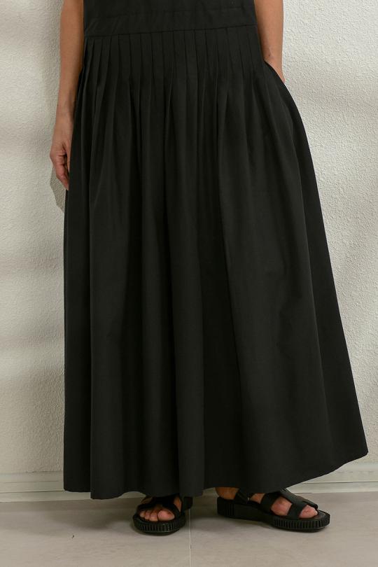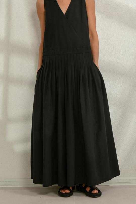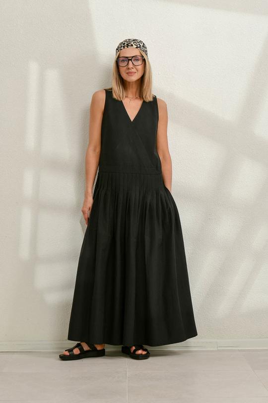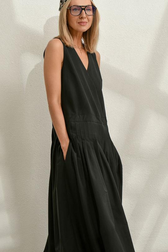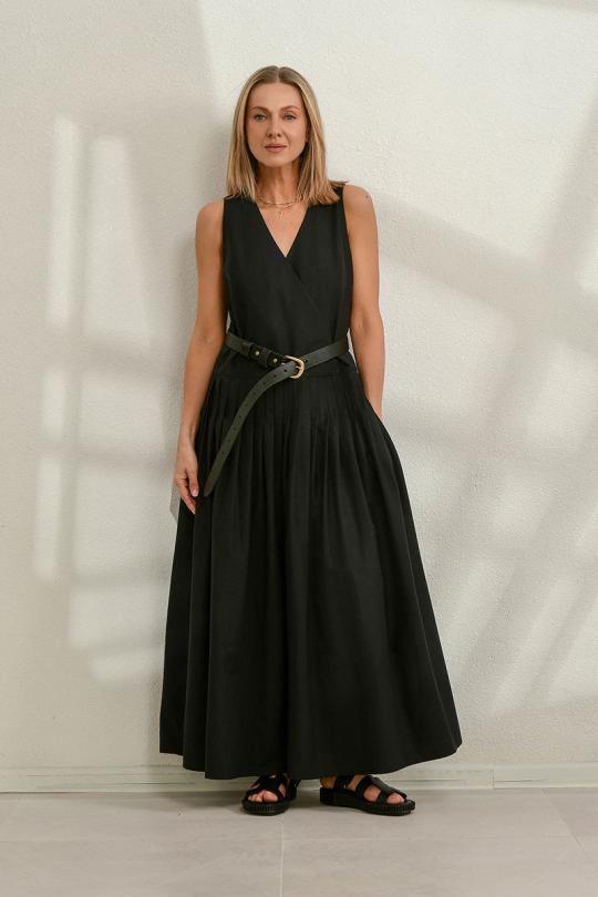 Платье макси в черном цвете - наш идеальный летний вариант. Декоративные складки, заниженная линия талии и удобные карманы в боковых швах. Комфортный свободный силуэт. Мы сшили его из воздушного хлопка, дышащего и приятного к коже.