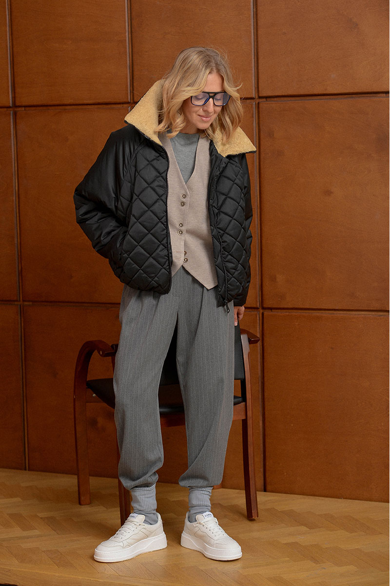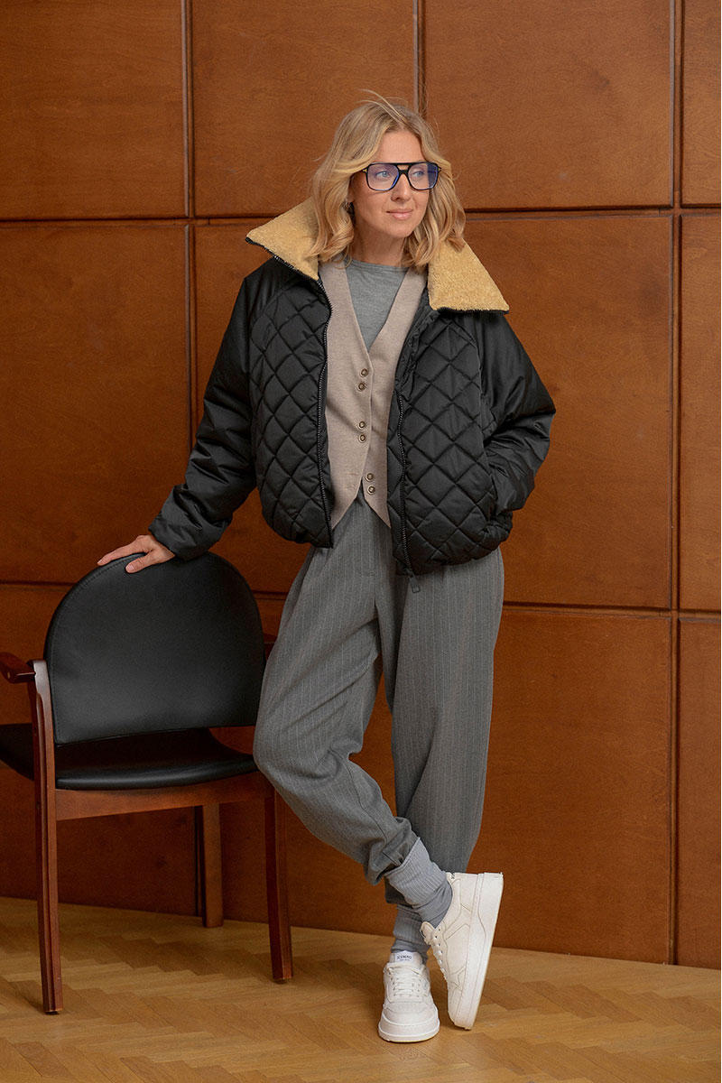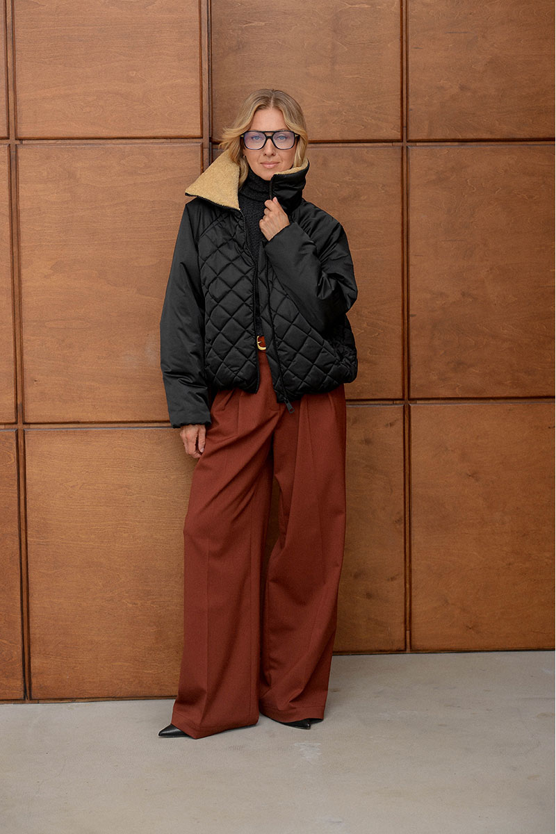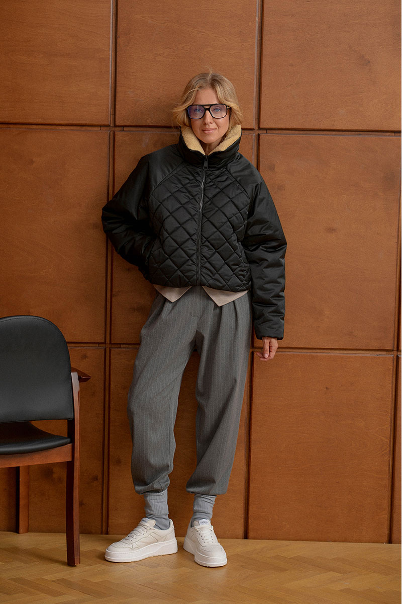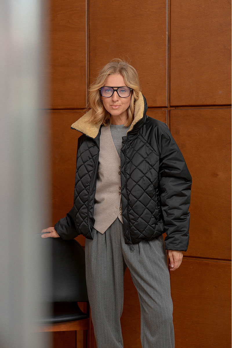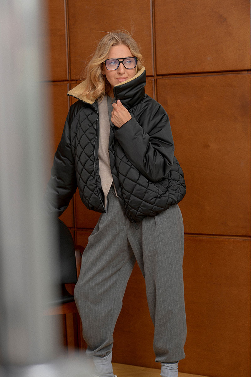 Утепленная куртка из стеганой ткани, где каждая деталь обещает, что холодный сезон будет приятным. Уютный округлый силуэт, высокий воротник с меховой вставкой из итальянской шерсти защищает от ветра и холода. Плотная, непромокаемая верхняя ткань, подкладка из твила. Утеплитель Isosoft хорошо сохраняет тепло и благодаря стеганому материалу, не выглядит слишком объемным.Рукав реглан смягчает линию плеча и обеспечивает свободу движений.Низ куртки эластичный,на резинке. Боковые карманы и накладной функциональный внутренний карман. Сезон - осень/зима, температурный режим: до -10 °C (зависит от личных ощущений).