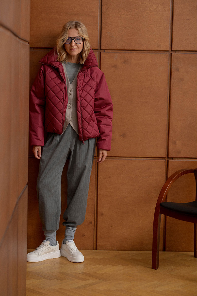Утепленная куртка из стеганой ткани, где каждая деталь обещает, что холодный сезон будет приятным. Уютный округлый силуэт, высокий воротник защищает от ветра и холода. Плотная, непромокаемая верхняя ткань ,подкладка из твила. Утеплитель Isosoft хорошо сохраняет тепло и благодаря стеганому материалу, не выглядит слишком объемным.Рукав реглан смягчает линию плеча и обеспечивает свободу движений.Низ куртки эластичный,на резинке. Боковые карманы и накладной функциональный внутренний карман. Сезон - осень/зима, температурный режим: до -10 °C (зависит от личных ощущений).
