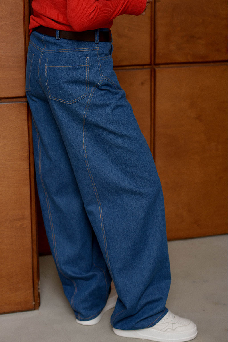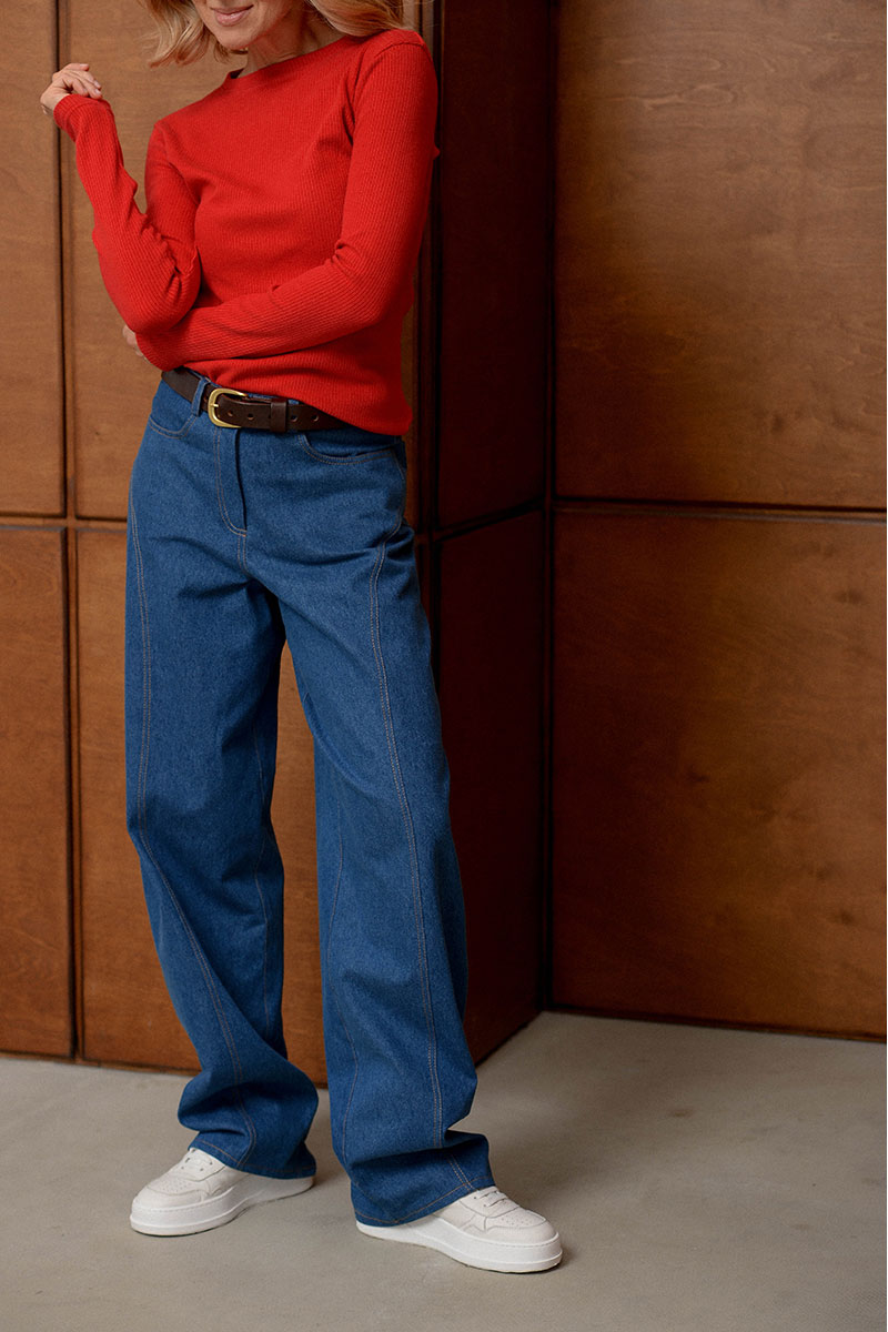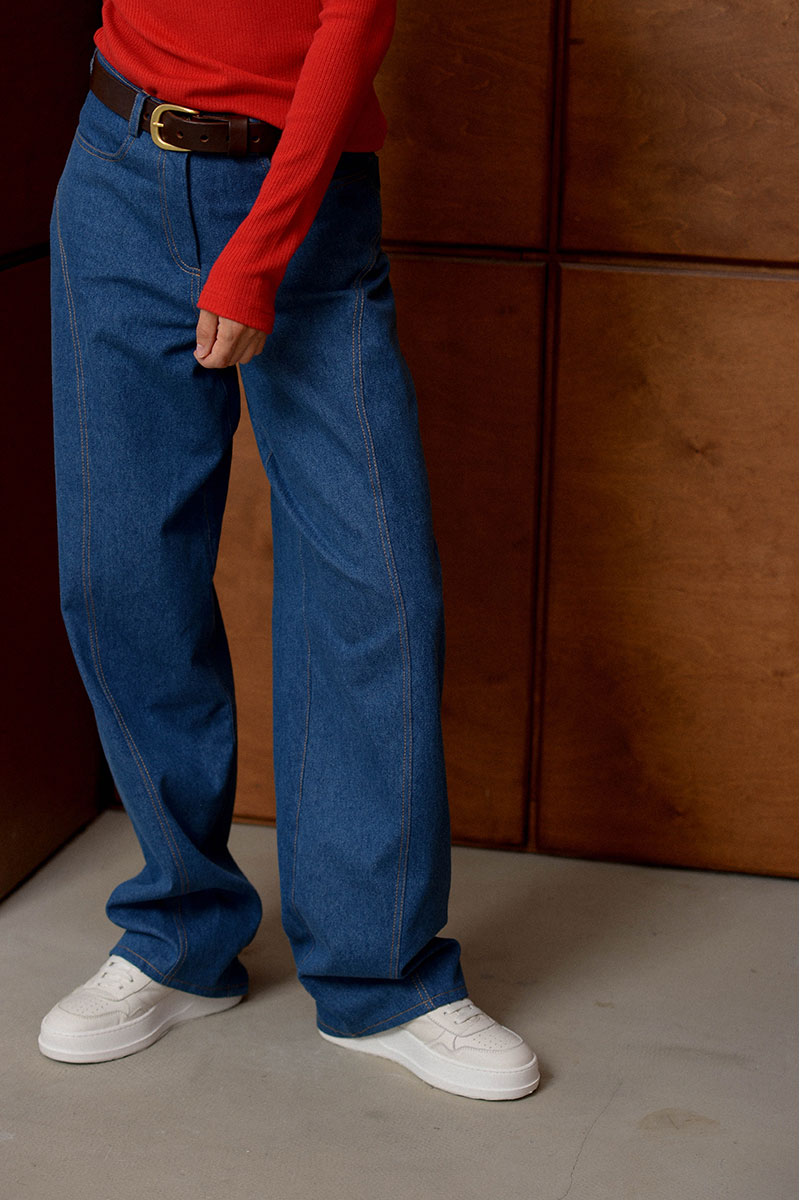 Удлиненные свободные джинсы со средней посадкой и необычным кроем. В этой модели нет бокового шва. Красиво выведенная линия спереди и сзади удачно подчеркивают фигуру и стройнит силуэт. Выполнены из плотного 100% хлопка. Подойдут и к изящным лодочкам, и к кроссовкам в дни, когда хочется сделать образ особенным, но комфортным.