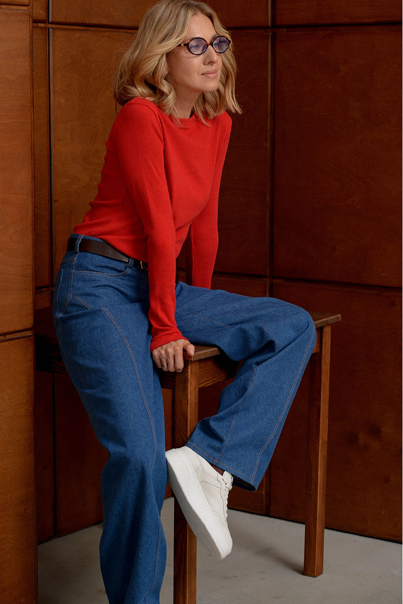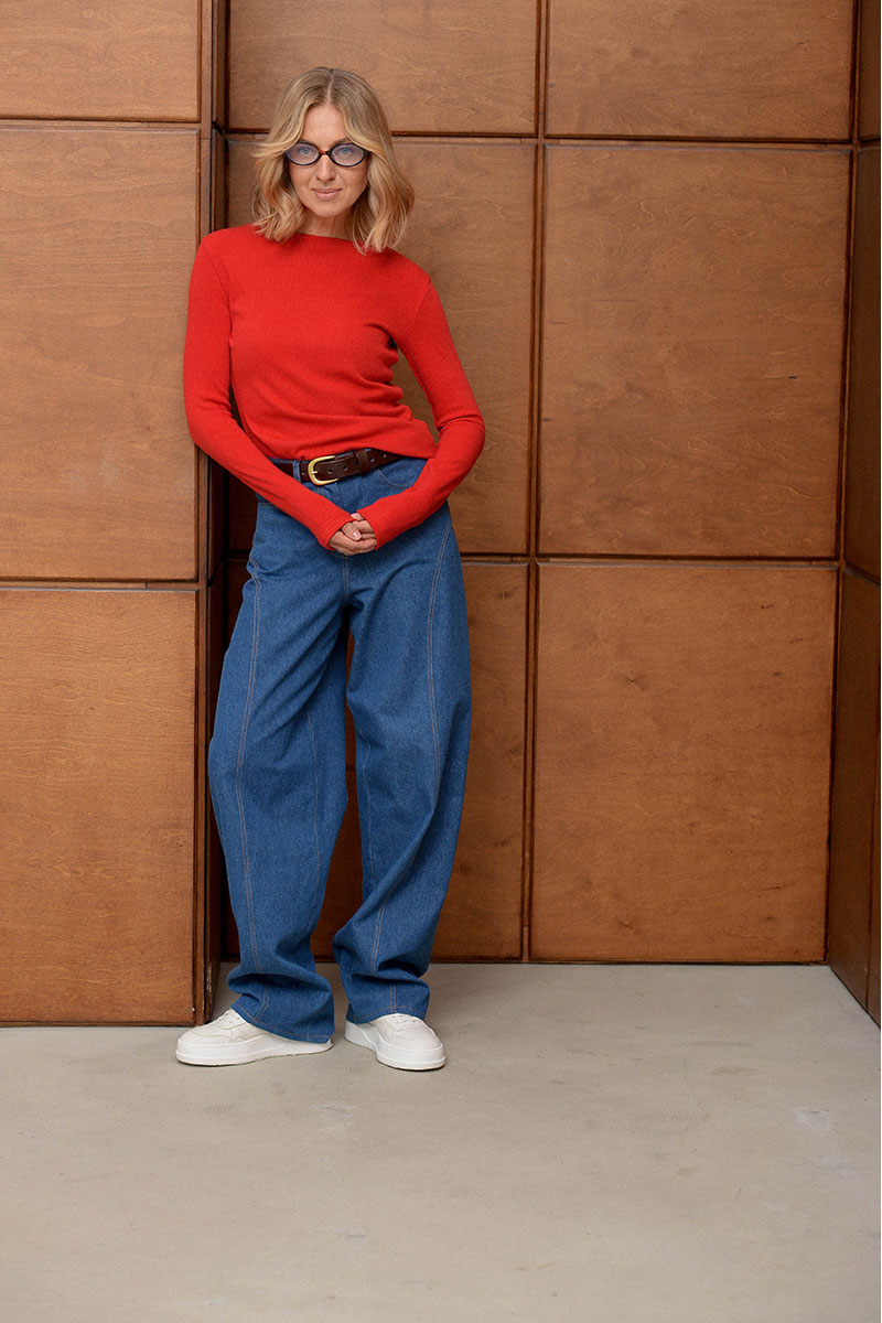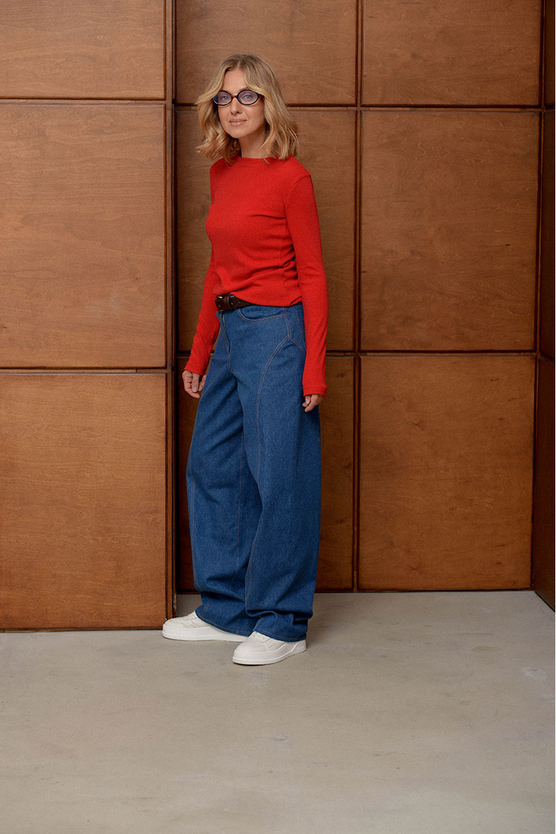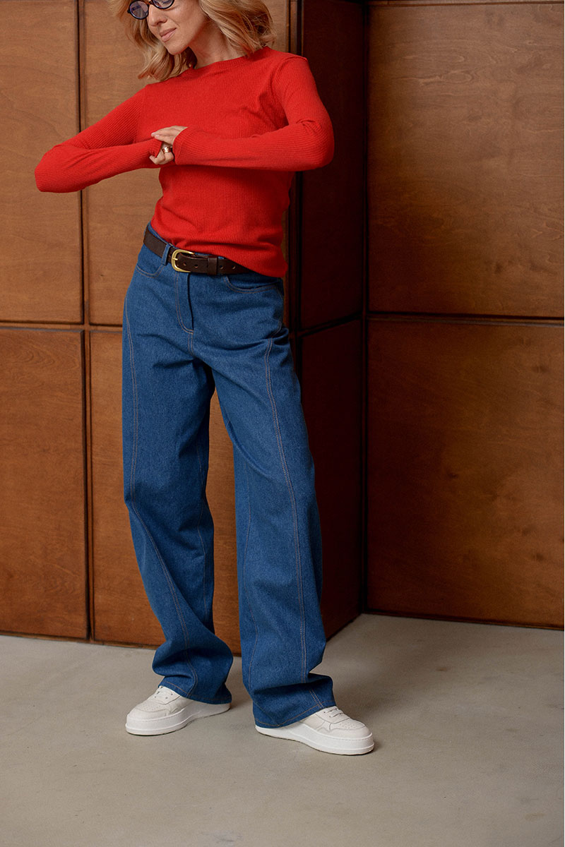 Удлиненные свободные джинсы со средней посадкой и необычным кроем. В этой модели нет бокового шва. Красиво выведенная линия спереди и сзади удачно подчеркивают фигуру и стройнит силуэт. Выполнены из плотного 100% хлопка. Подойдут и к изящным лодочкам, и к кроссовкам в дни, когда хочется сделать образ особенным, но комфортным.