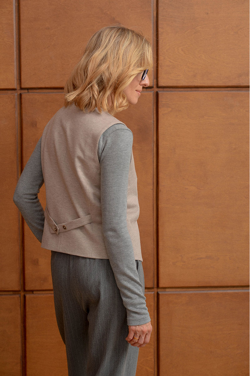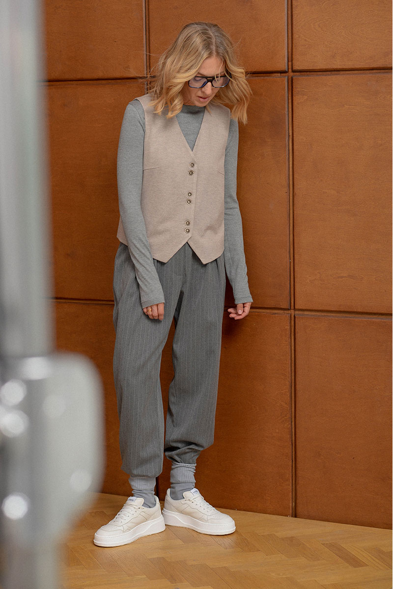 Жилет в бежевом оттенке - микс классики и комфорта. Выполнен из мягкой смесовой шерсти и вискозы с выраженным рубчиком. Подкладка поливискоза. Комбинируйте жилет с брюками, джинсами или носите поверх водолазки, футболки и даже в качестве топа.