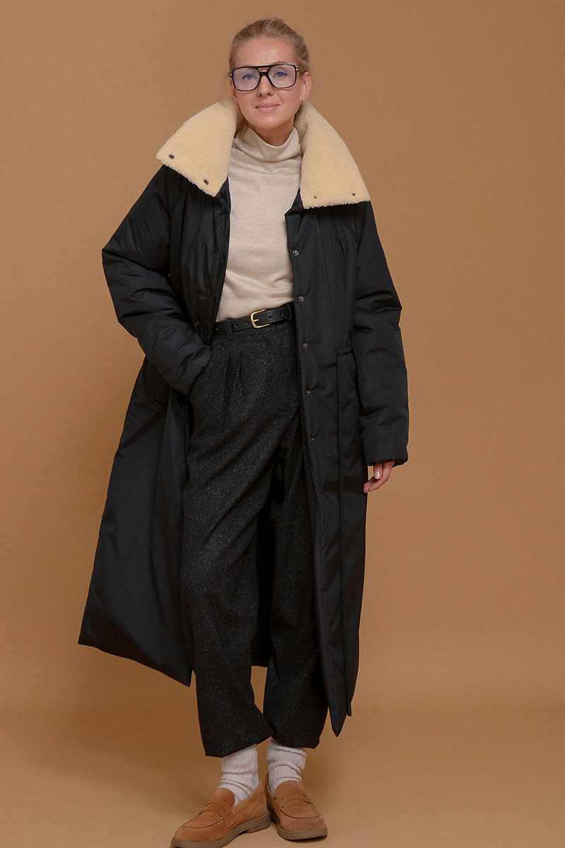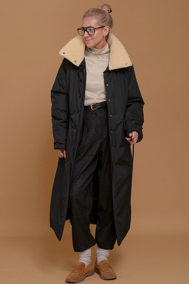 Невероятно легкое и одновременно теплое и уютное пальто. С ним можно носить любимые платья даже в морозы. Плотная ткань не пропускает ветер и влагу, высокий воротник-стойка с мягким итальянским мехом и манжеты на резинке помогают сберечь тепло. С помощью кулиски на поясе можно сделать силуэт прямым или подчеркнуть талию. Утеплитель Isosoft хорошо сохраняет тепло и не утяжеляет изделие. Подкладочная ткань - из приятного к коже твила. Рукав реглан смягчает линию плеча и обеспечивает свободу движений. Застегивается на кнопки.