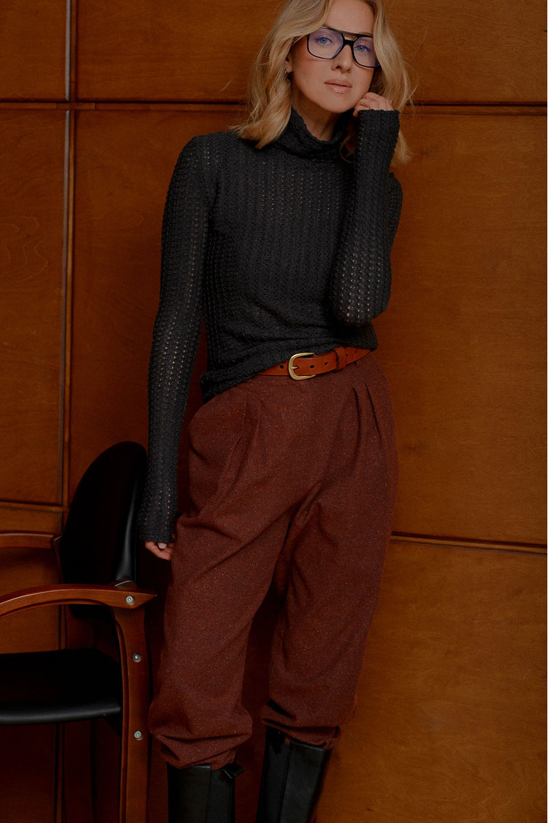 Водолазка в графитовом оттенке. Мягкий, приятный к коже эластичный ажурный трикотаж на основе вискозы. Комфортно облегает силуэт, приятный на ощупь и отлично подходит для ношения под жакет. Удлиненный рукав.
