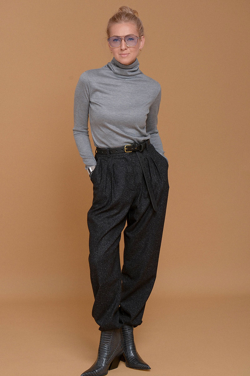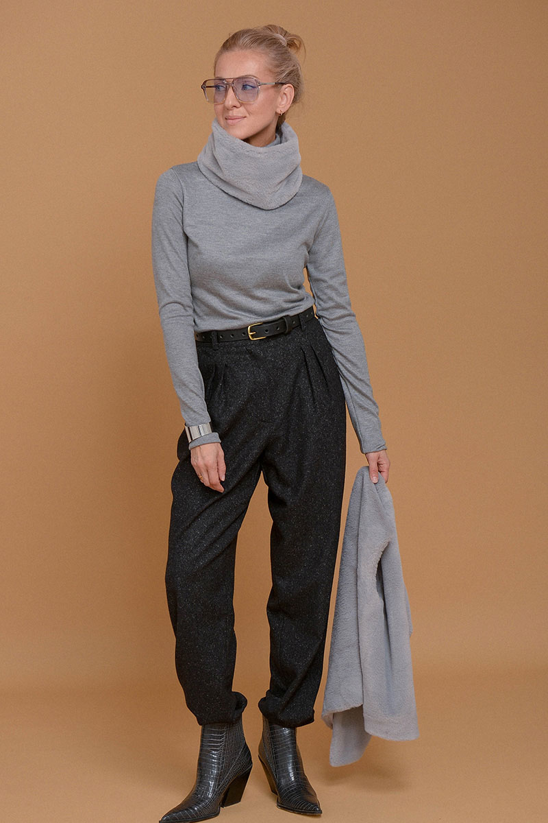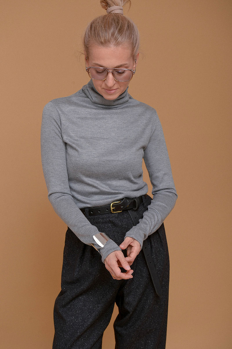 Водолазка в сером оттенке. Выполнена из мягкой смесовой шерсти и вискозы, нежного и гладкого материала - почти не ощущается на теле. Комфортно облегает силуэт и отлично подходит для ношения под жакет. Особенность изделия - высокая цельнокроенная горловина.