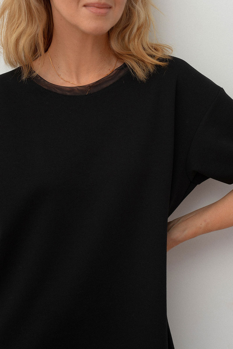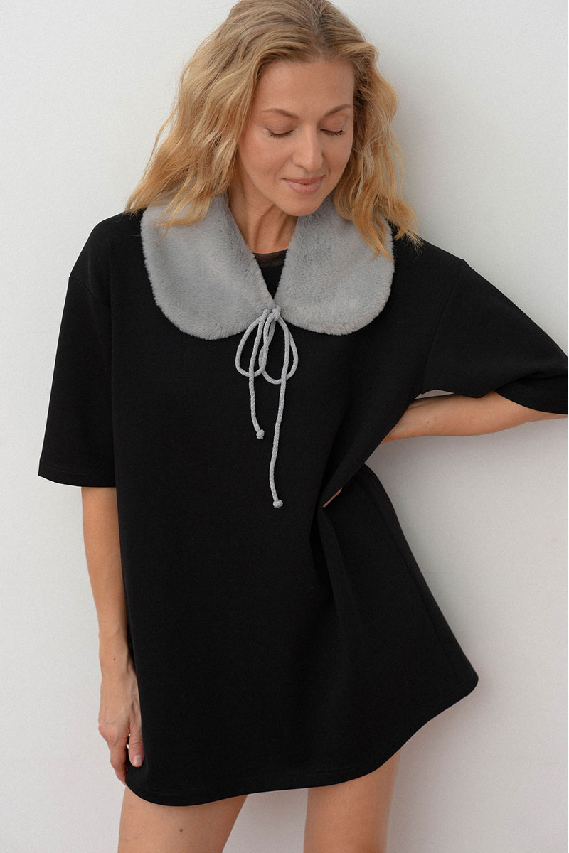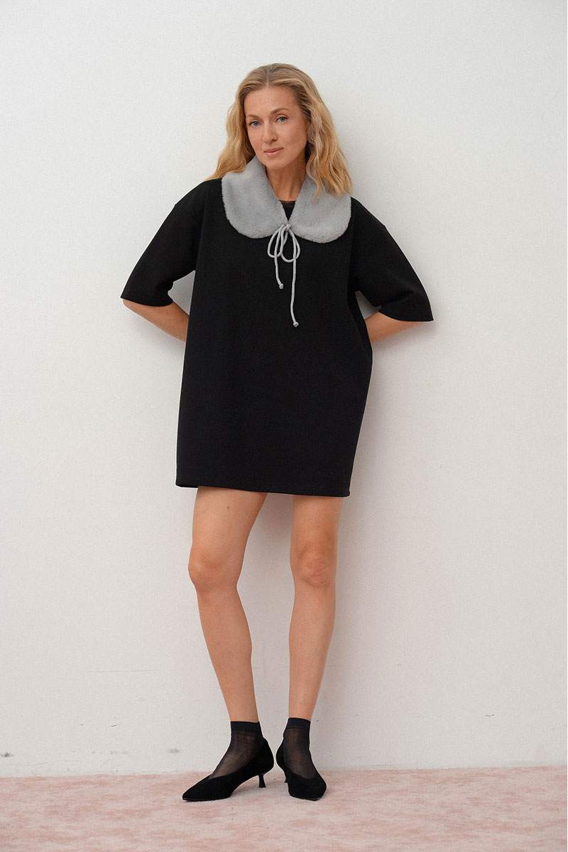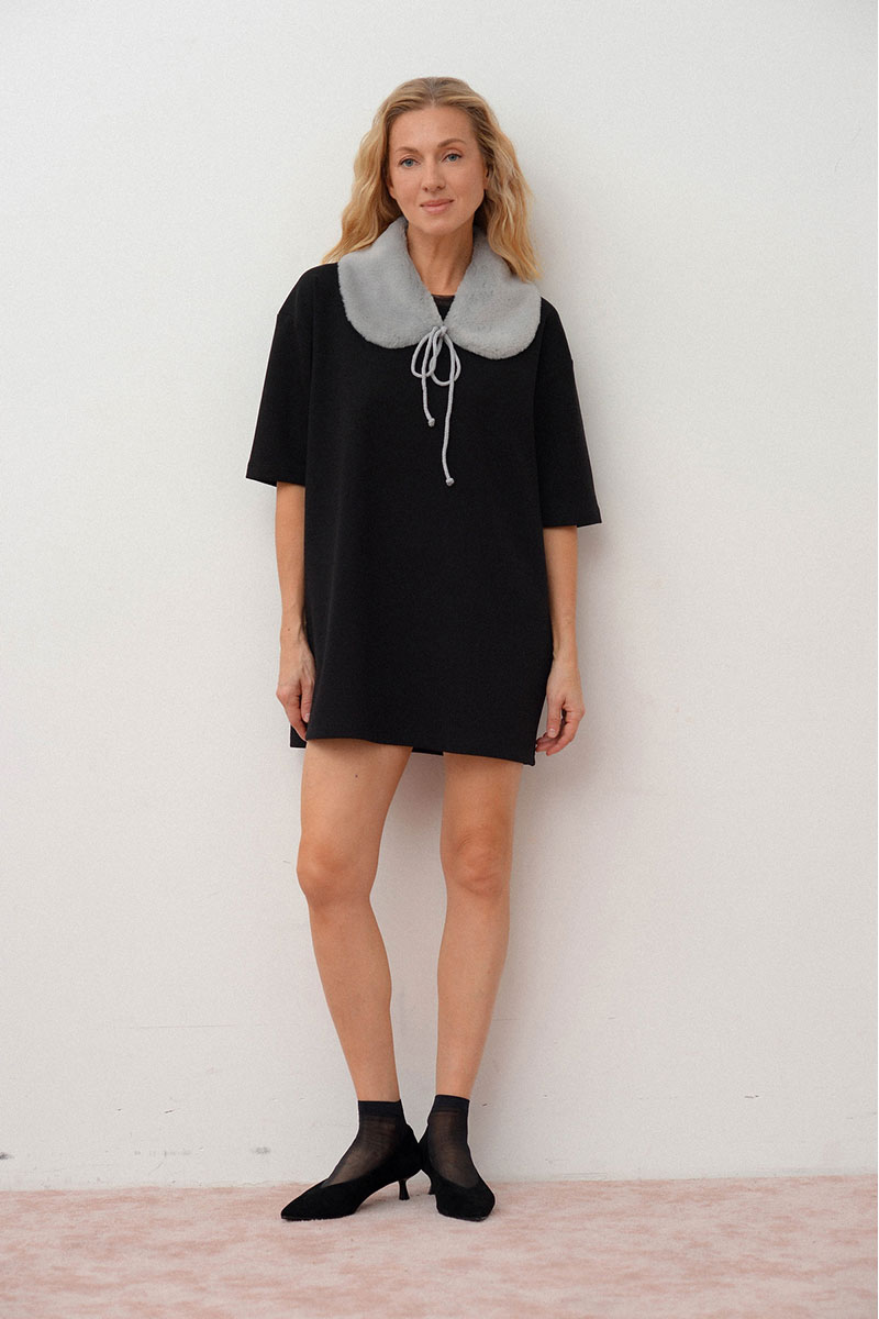 Платье мини со съемным воротником . Лаконичное, но запоминающееся благодаря съемному воротнику в сером оттенке из итальянского экомеха. Идеально в случаях, когда образ должен быть комфортным и изящным одновременно. Выполнено из плотной приятной к коже хлопковой ткани. Горловина обработана нежной сеткой в тон платья.