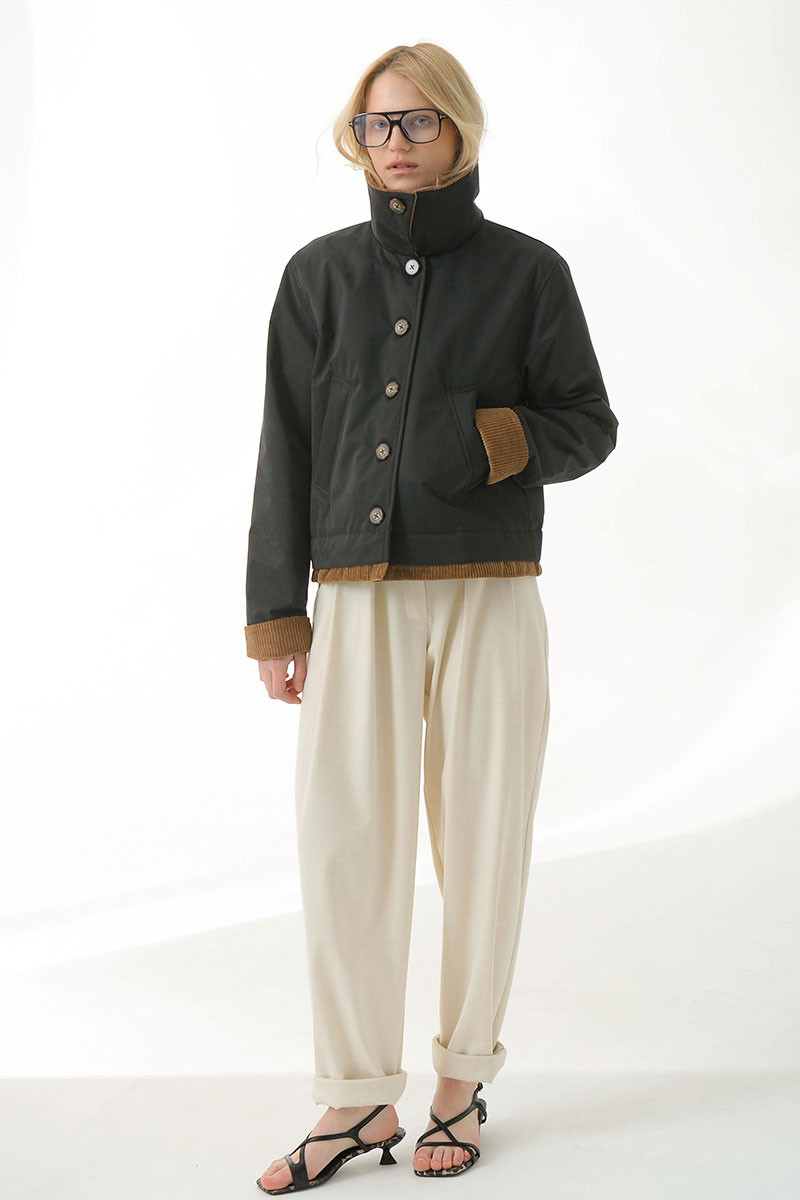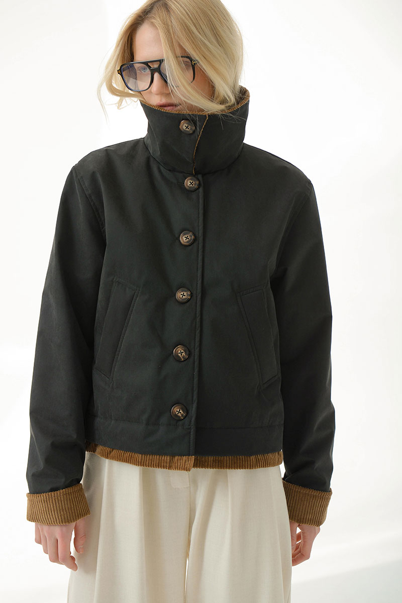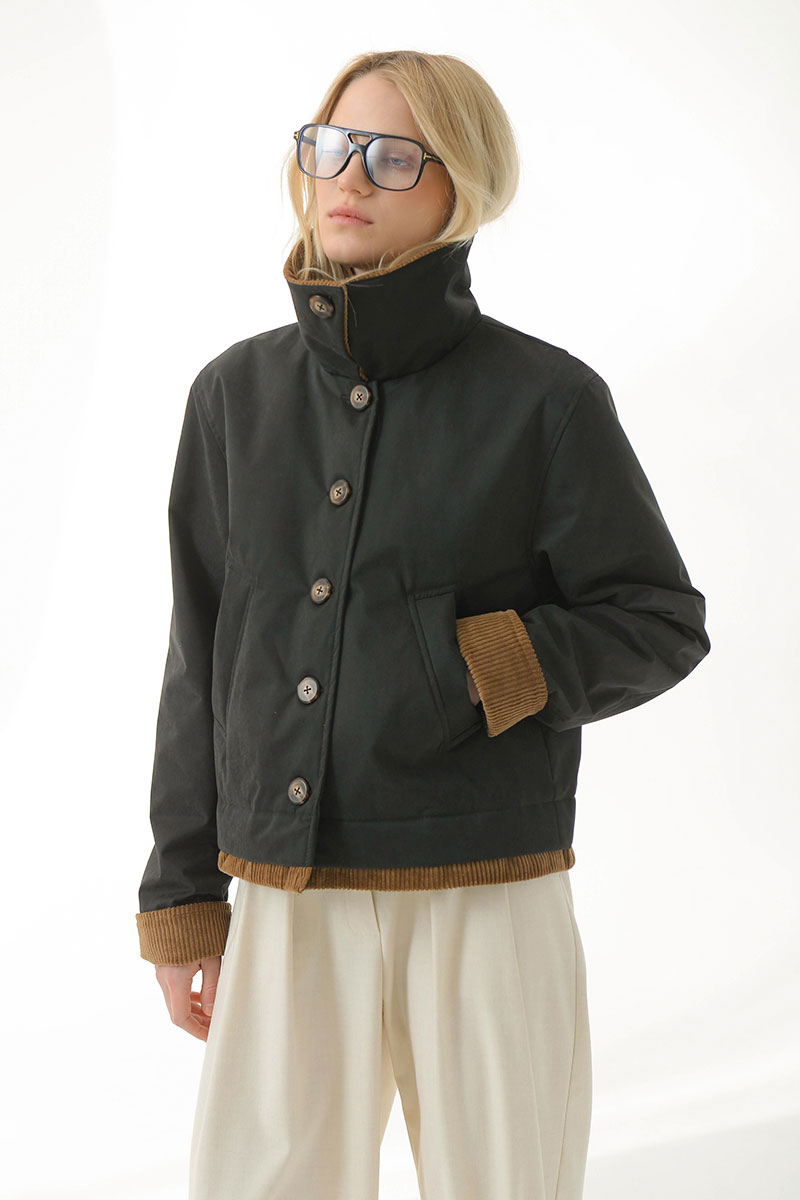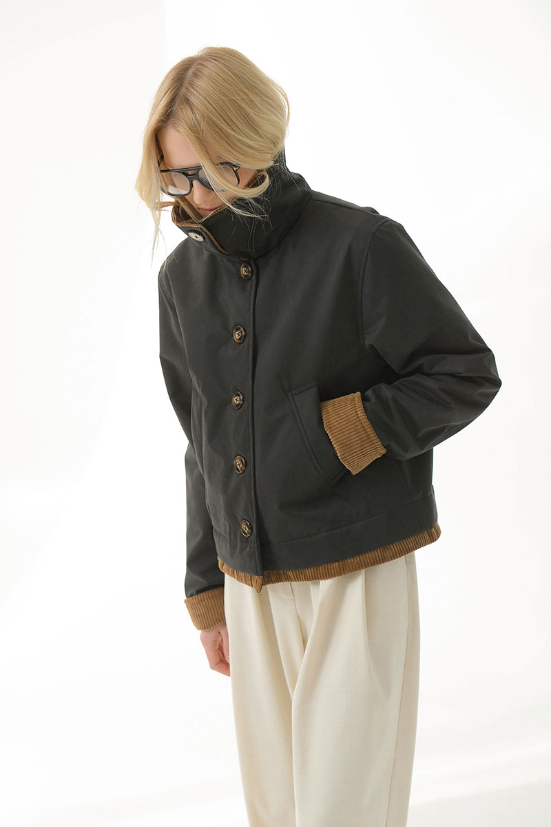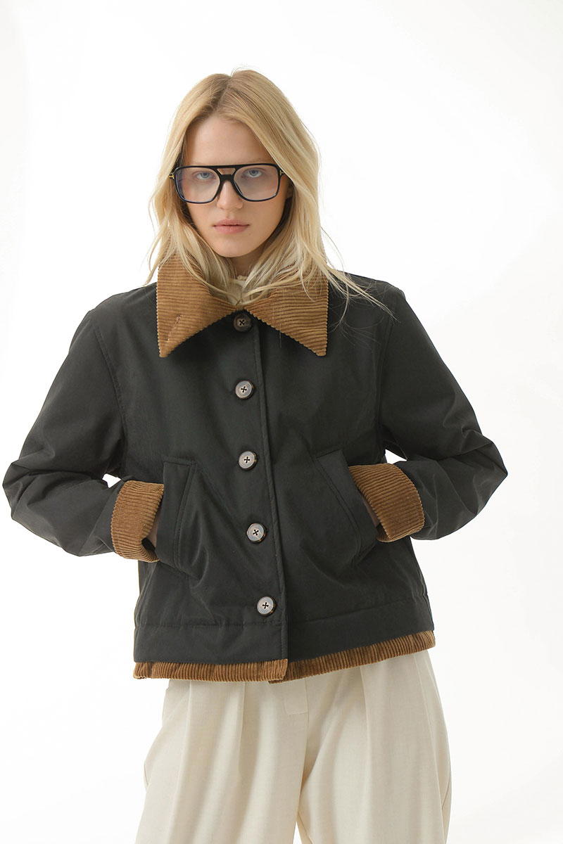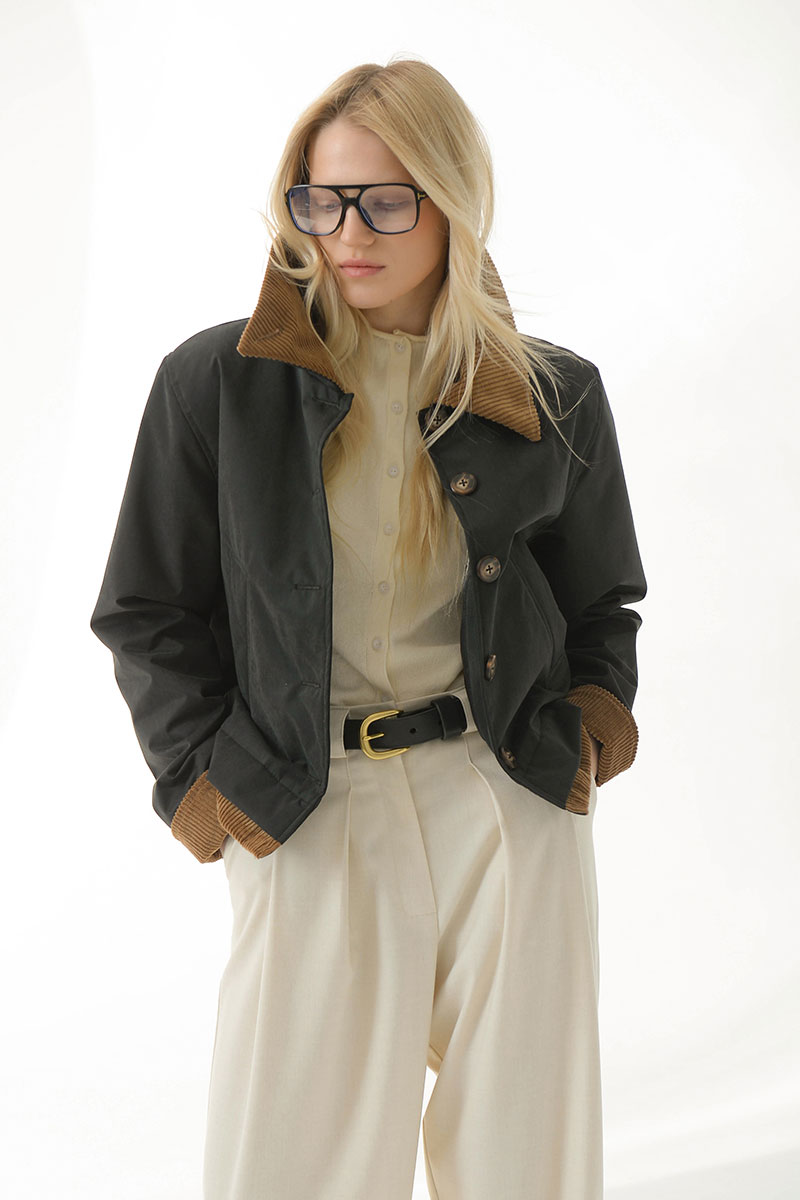 зафиксировать пуговицей. Бархатистая текстура вельвета на воротнике,рукавах и по низу изделия добавляет выразительность.Длину рукава можно регулировать подворотом из вельвета.