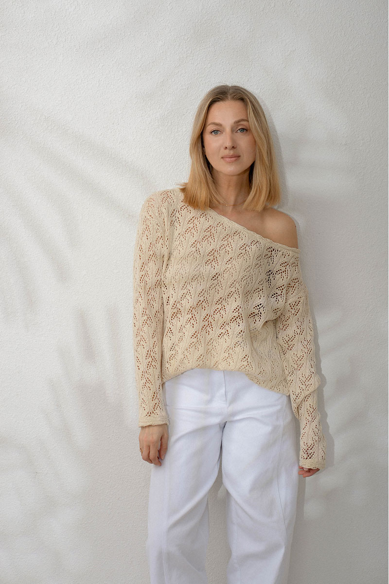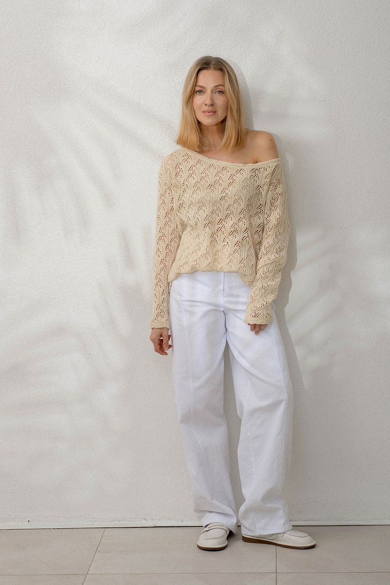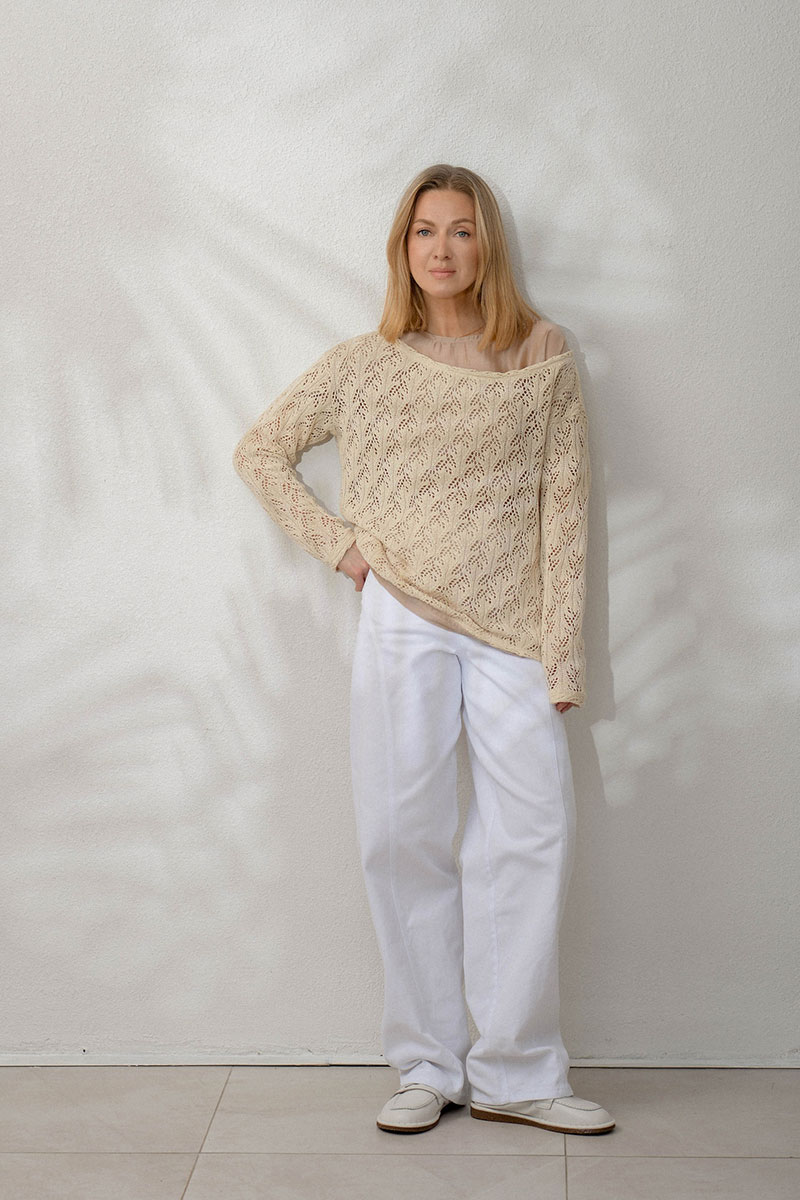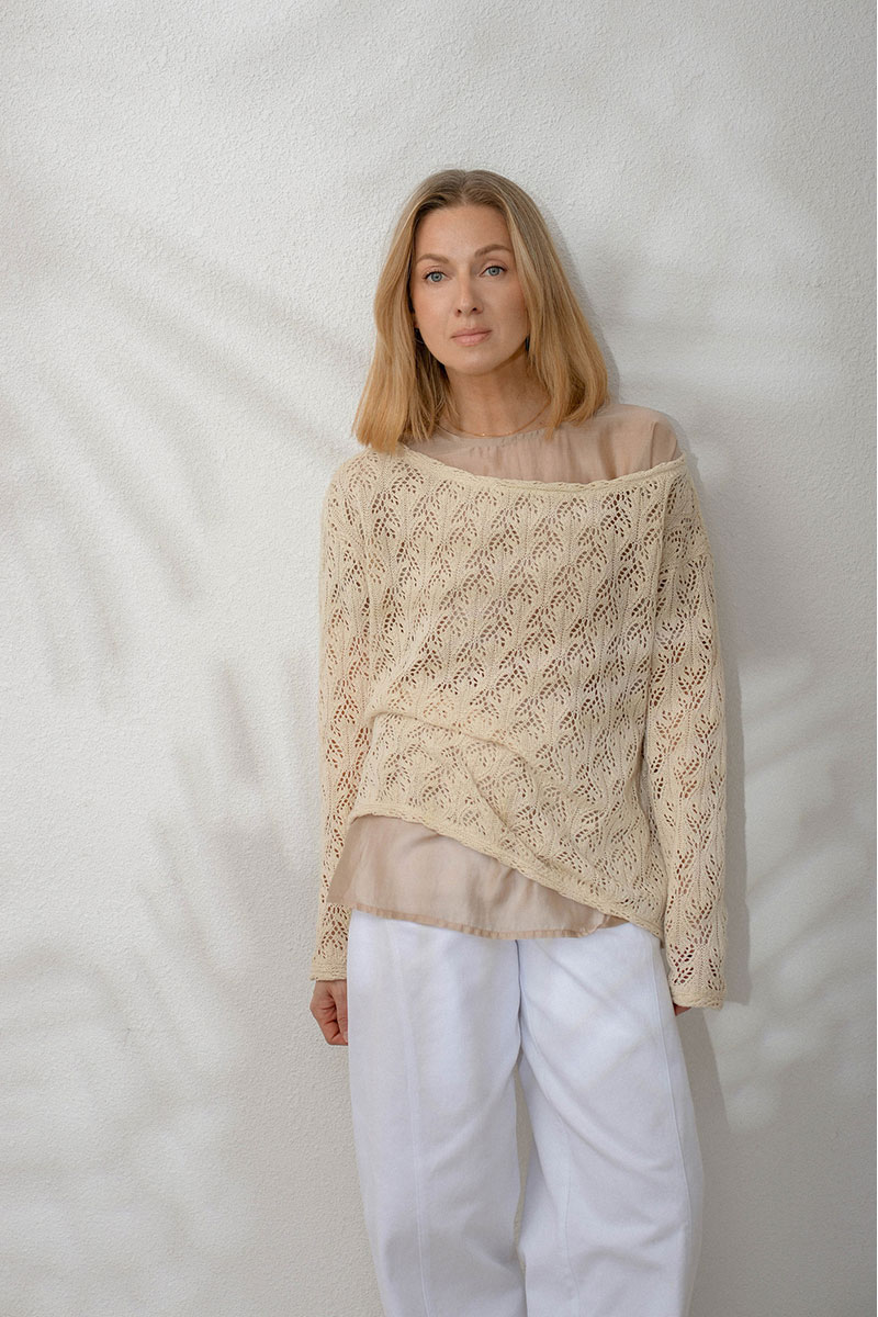 Джемпер для расслабленных образов.Фактурный трикотаж на основе хлопка.Комфортный силуэт без стягивающих резинок и универсальный оттенок, благодаря которым джемпер захочется носить как можно чаще.