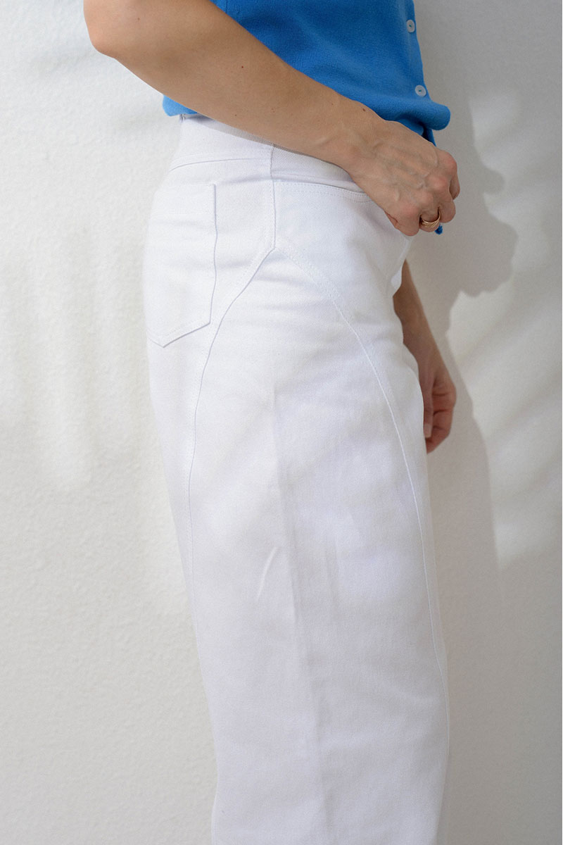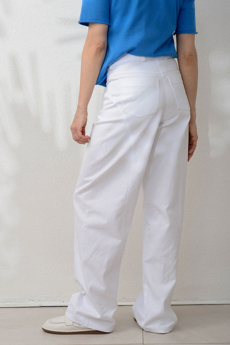 Свободные джинсы со средней посадкой и необычным кроем. В этой модели нет бокового шва. Красиво выведенная линия спереди и сзади удачно подчеркивают фигуру и стройнит силуэт. Подойдут и к изящным лодочкам, и к кроссовкам в дни, когда хочется сделать образ особенным, но комфортным.