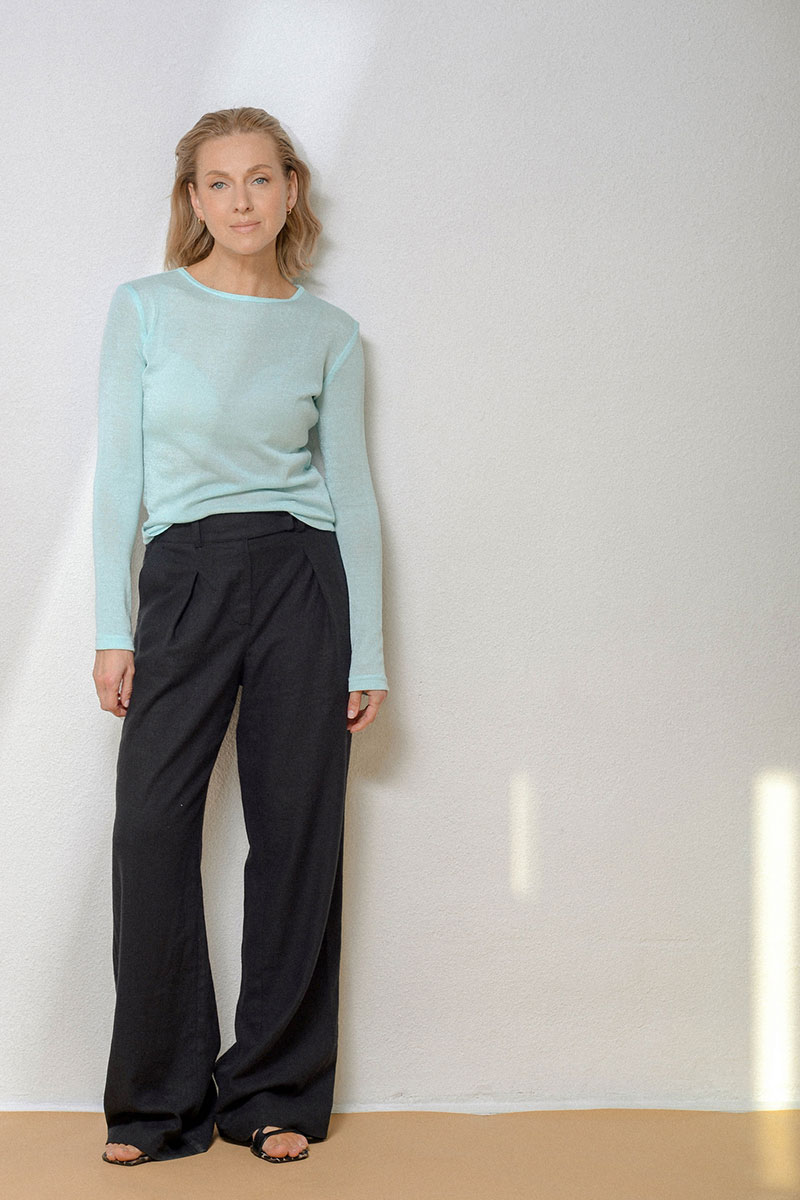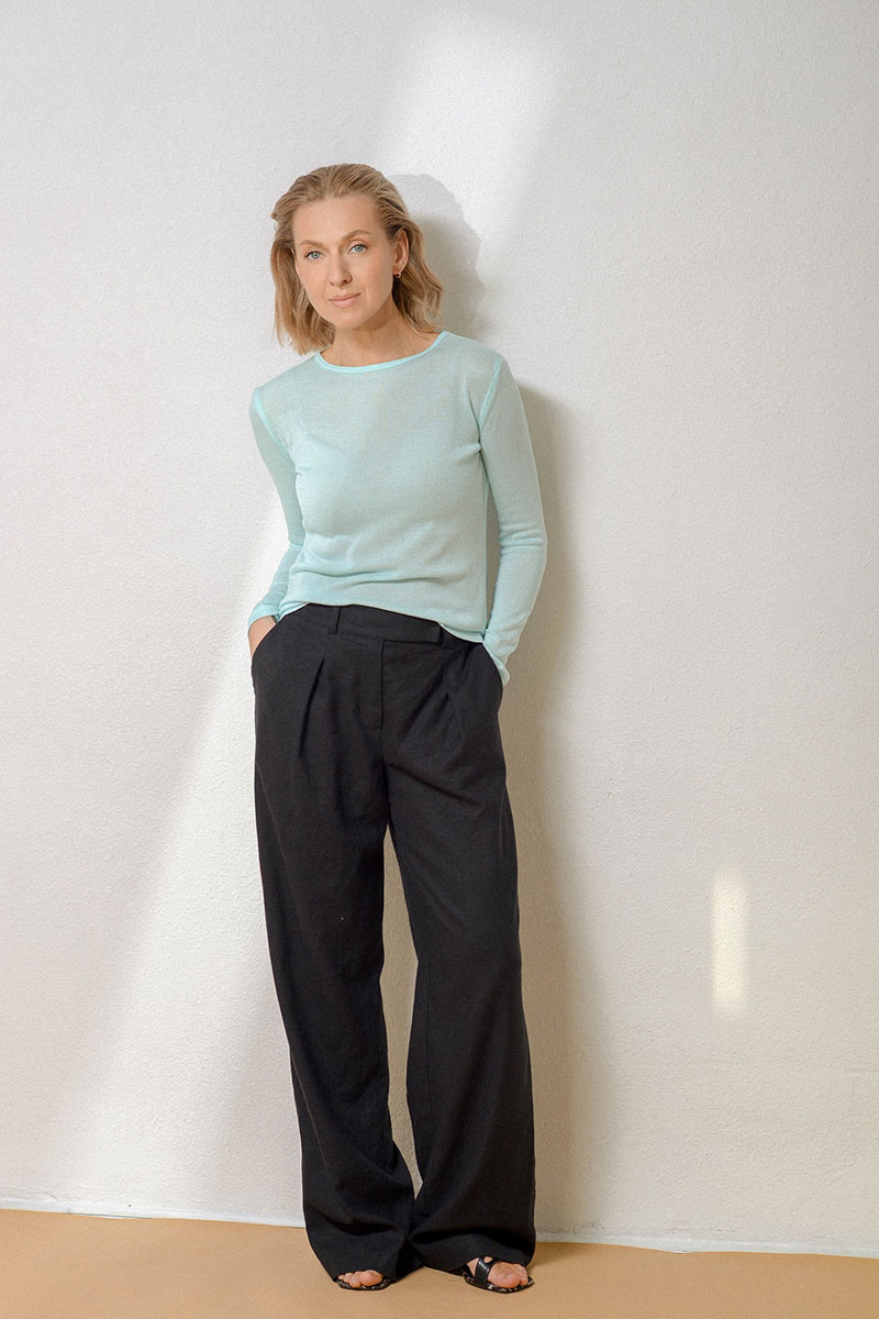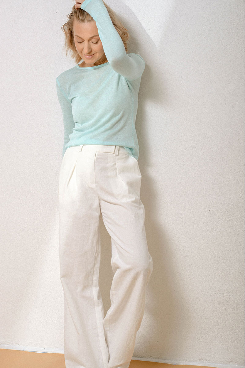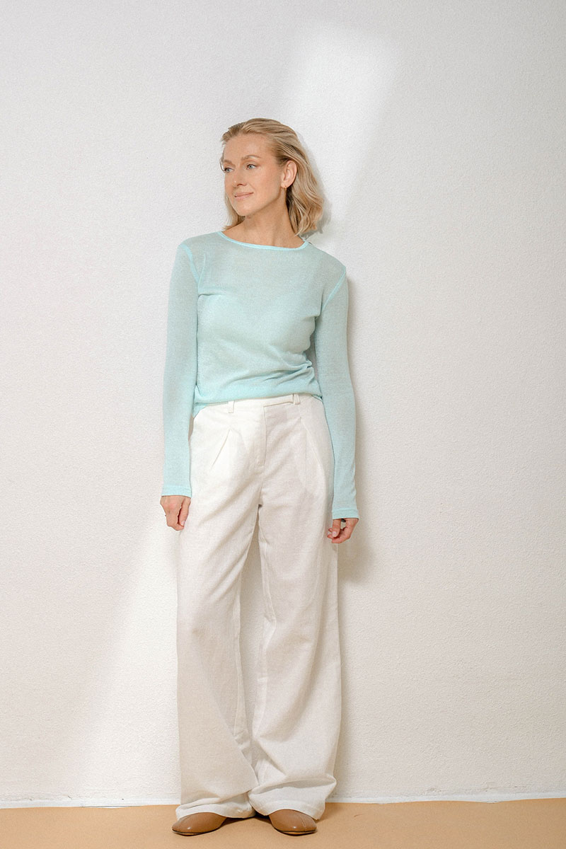 Дышащий и легкий джемпер выполнен из итальянского хлопка в нежном бирюзовом оттенке. Полуоблегающий силуэт повторяет линии тела, создавая безупречную посадку.Трикотаж мягко драпируется и деликатно поблескивает. Лаконичный крой позволяет сочетать эту модель с абсолютно разными низами.Идеально сочетается с брюками и юбками из нашей коллекции.