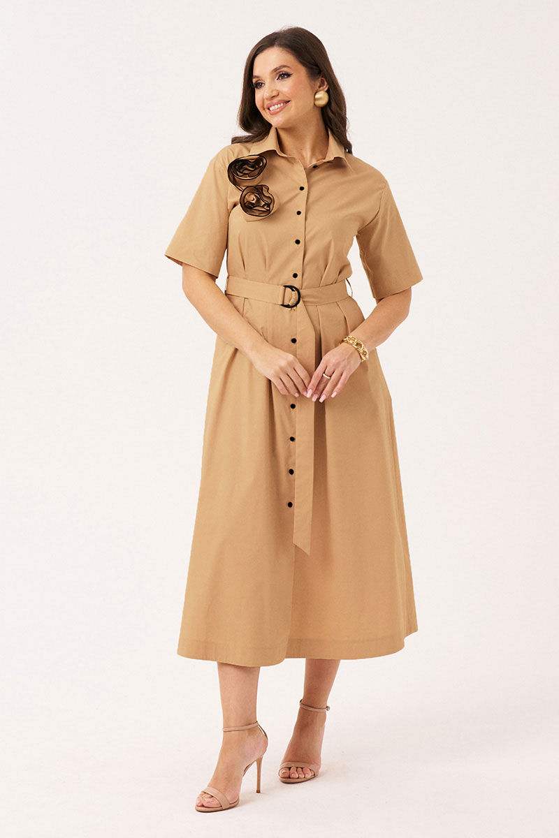 Женское платье из смесовой ткани с высоким содержанием хлопка – это идеальный выбор для создания элегантного и стильного образа. Полуприлегающий силуэт подчеркивает фигуру, а