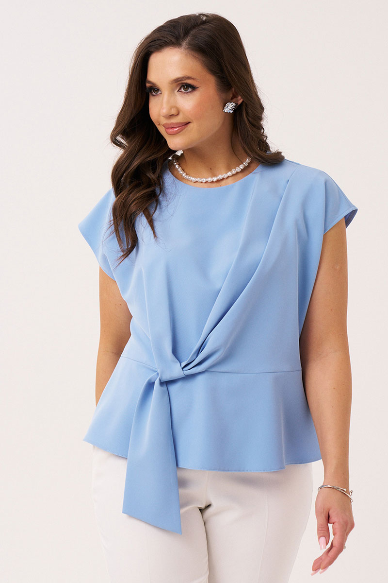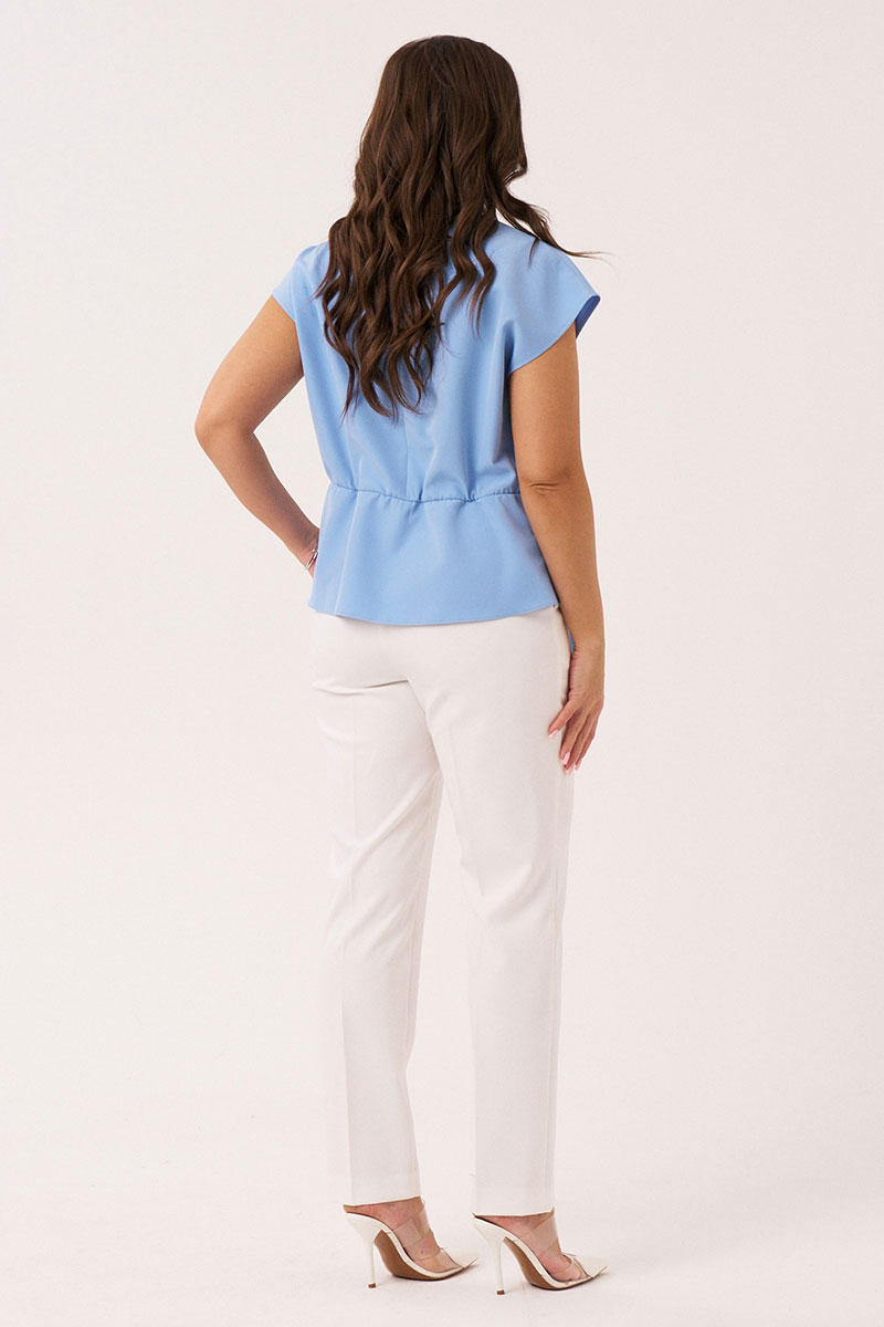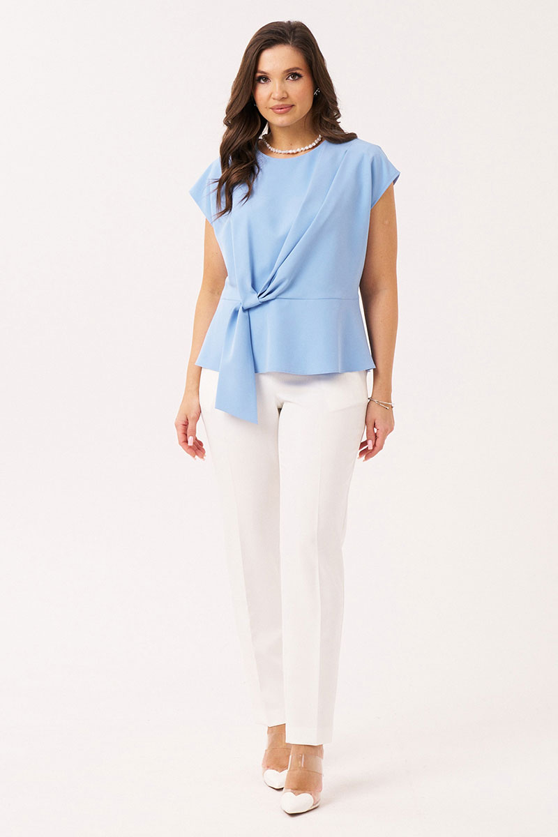 Блузка женская из смесовой ткани для повседневной и торжественной носки. Блузка отрезная по низу. Верхняя часть переда имеет складку по плечевому и дизайнерский декоративный узел. Верхняя часть спинки со средним швом и застежкой капелькой на петлю и пуговицу, по линии талии имеется вставка на резинке, что создает небольшую сборку. Горловина округлая. Рукава цельнокроеные. Стильная блузка в молочном оттенке станет вашим фаворитом среди вашего гардероба, за счет ее уникального дизайна вы определенно будете ловить на себе восхищенные взгляды прохожих. Данная блузка будет красиво сидеть на вашей фигуре и радовать ваш глаз.