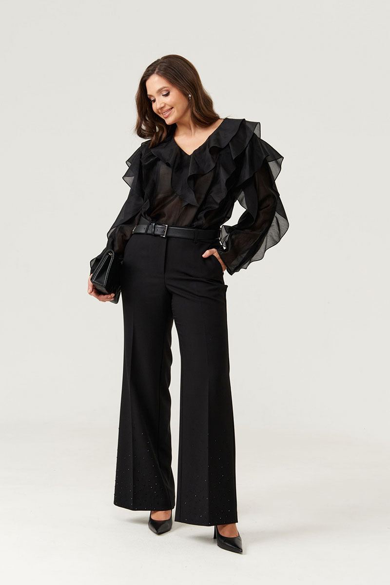 Эта блузка чёрного оттенка идеально подойдет для повседневных образов — она сочетает комфорт, стиль и женственность, позволяя выглядеть элегантно в любой ситуации.