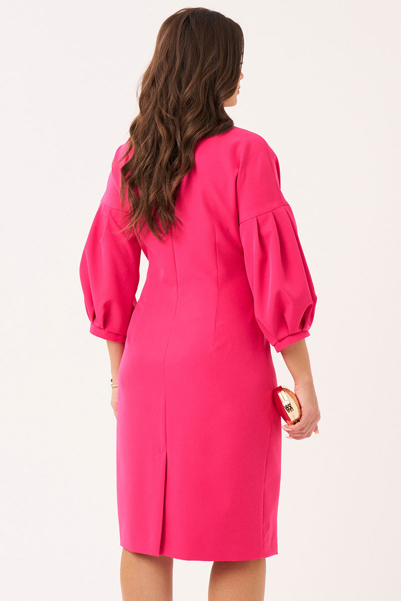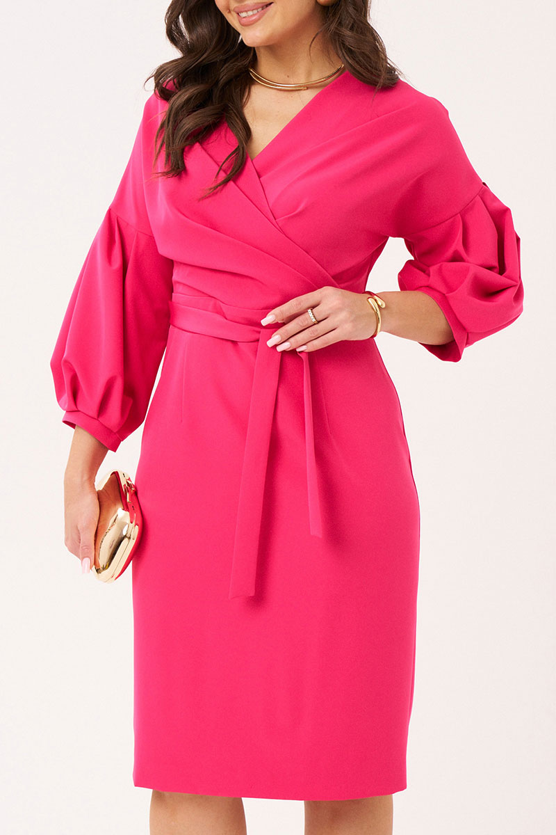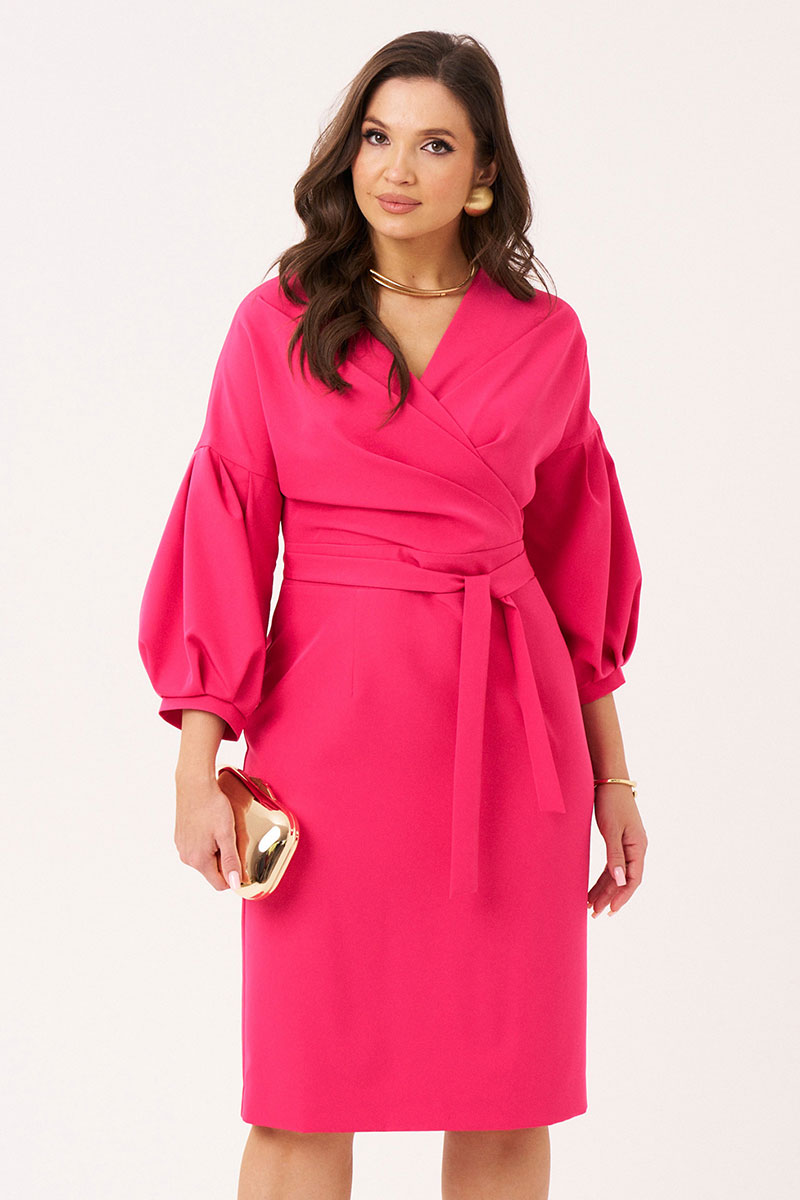 Это элегантное женское платье, выполненное из смесовой ткани, идеально подходит для повседневной носки. Платье на запах с изящными складками создает легкий и романтичный образ, подчеркивая женственность и комфорт. Свободный силуэт платья обеспечивает удобство и свободу движений. V-образный вырез на запах визуально удлиняет шею и добавляет изысканности. Отрезной пояс по линии талии подчеркивает фигуру, а дополнительно притаченный пояс позволяет регулировать посадку. Спинка со средним швом и двумя талиевыми вытачками для лучшей посадки. В среднем шве спинки расположена потайная застежка-молния для удобства надевания. Шлица в среднем шве спинки добавляет свободы движений и стильный акцент. Рукава втачные со спущенным плечом, создающие расслабленный вид. Низ рукава со складками обработан притачной манжетой для аккуратного завершения. Это платье станет отличным выбором для повседневной носки — его можно легко сочетать с различными аксессуарами и обувью. Легкость ткани обеспечивает комфорт в течение всего дня, а стильный дизайн позволяет выглядеть элегантно в любой ситуации. Платье подчеркнет индивидуальность и вкус современной женщины, делая ее образ ярким и запоминающимся.