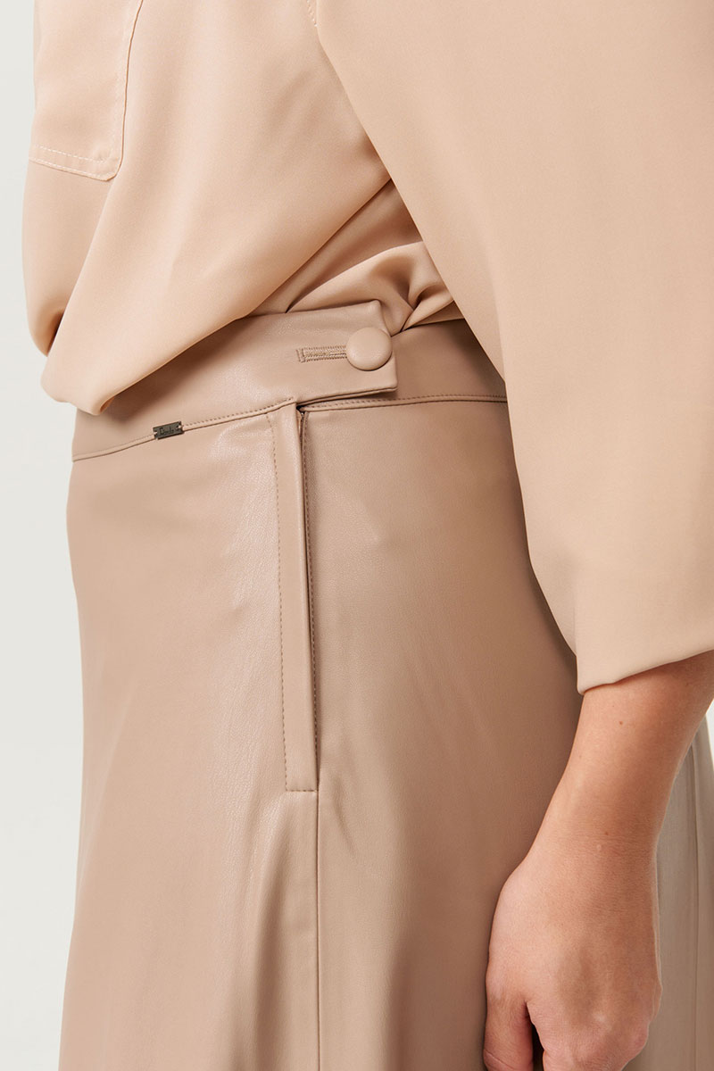 Эта женская кожаная юбка — воплощение элегантности и практичности, созданная для тех, кто ценит стиль в повседневной жизни. Ее расширенный к низу силуэт словно мягкое облако,