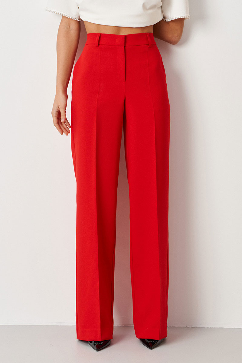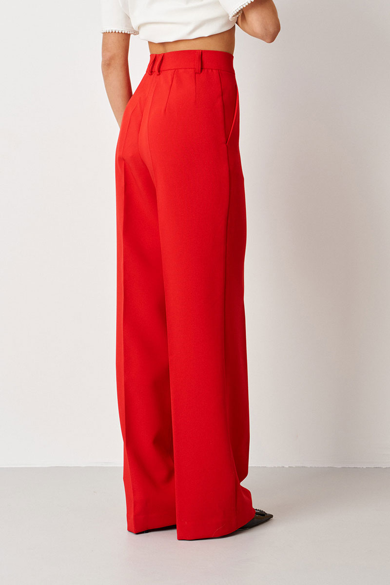 Эти женские брюки выполнены из костюмной поливискозной ткани, идеально подходящей для повседневных образов. Их классический крой делают их универсальным элементом гардероба.