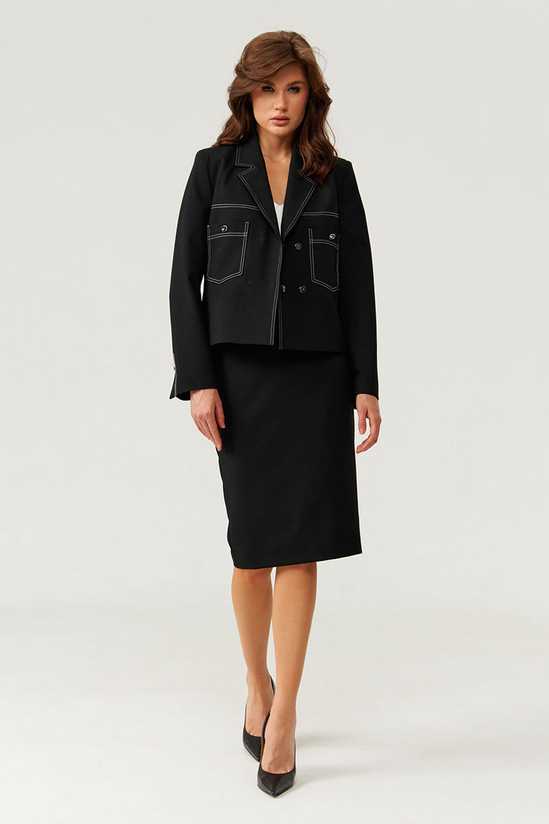 - Состав: ПЭ 65%; вискоза 28%; эластан 7%; подкладка: ПЭ 100%