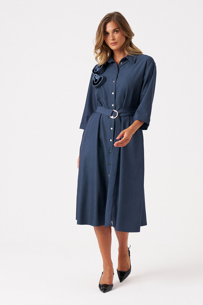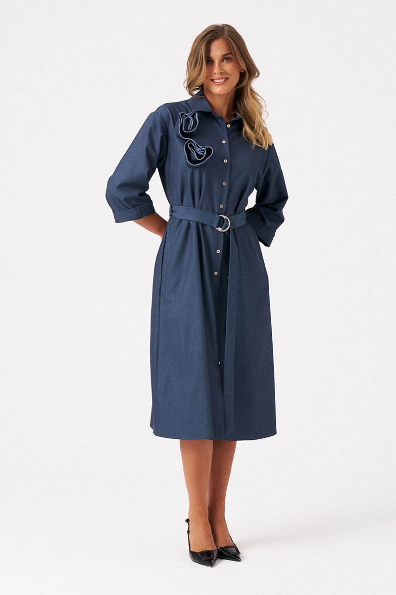посадку, а потайные карманы в боковых швах делают платье еще более удобным. Шлевки позволяют носить модель с поясом, подчеркивая линию талии.