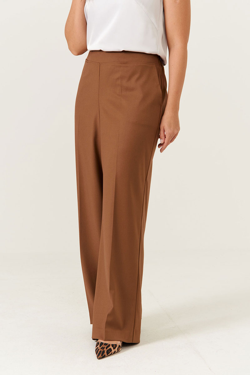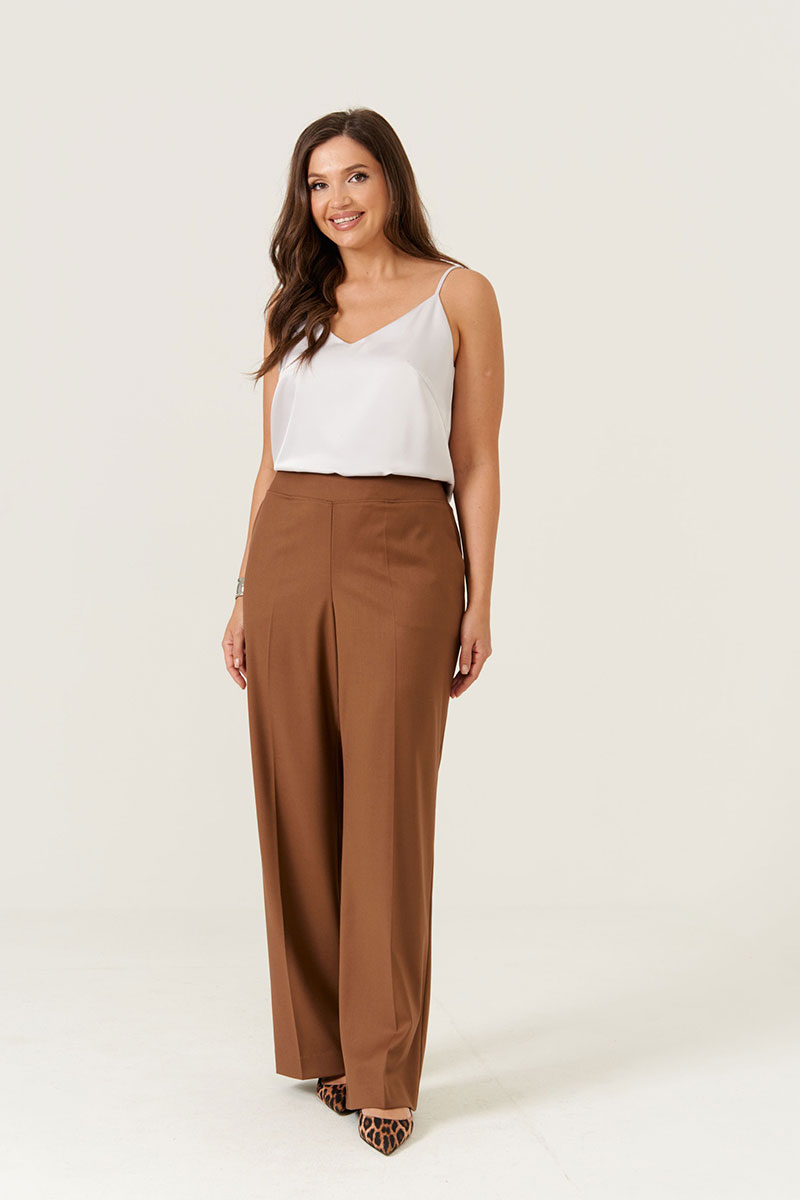 Брюки женские из поливискозной ткани для повседневной носки. Брюки прямые. Верхний срез брюк обработан притачным широким поясом со вставкой на резинке в задней части. Задняя часть брюк имеет карман с листочкой. В боковом шве располагаются потайные карманы. Стильные брюки, которые отлично будут смотреться на любой фигуре, а главное в них вы будете чувствовать себя комфортно.
