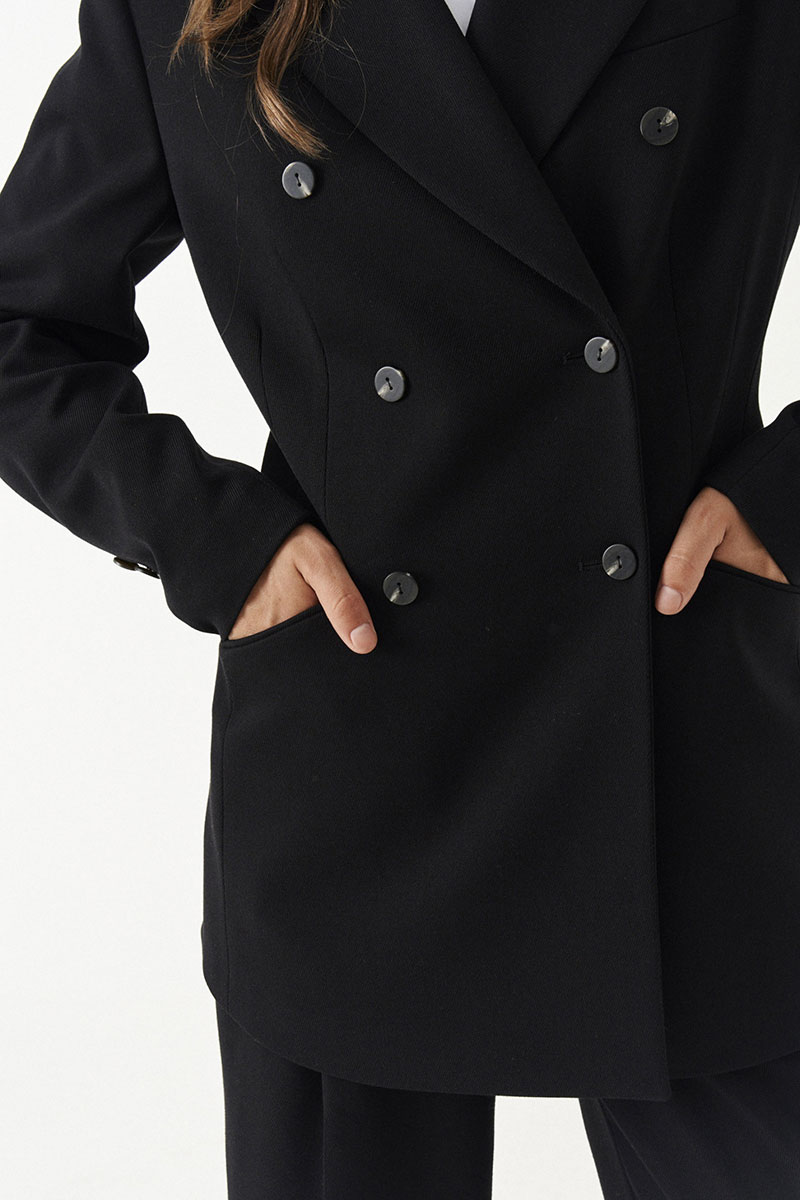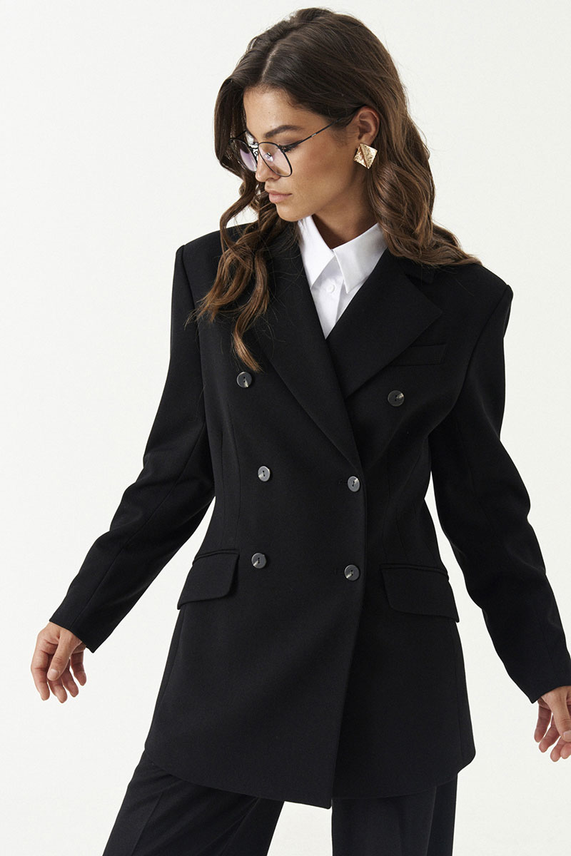Жакет из поливискозной ткани полуприлегающего силуэта для повседневной носки на подкладке. Подкладка из поливискозной ткани. Жакет двубортный с застежкой на обметанные петли и пуговицы. Рукава длинные втачные. По переду и по спинке располагаются талиевые вытачки, а также имеются прорезные карманы с клапаном. Длина изделия классическая. Красивый и очень удобный жакет, который станет отличным дополнением в вашем гардеробе.