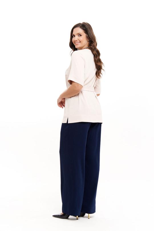 Брюки женские из струящейся ткани для повседневной носки. Брюки прямые. Верхний срез брюк обработан притачным поясом на резинке. Длина брюк классическая. Данный вариант брюк синего оттенка можно носить на любые случаи, они идеально будут сидеть и подчеркивать вашу фигуру. В данных брюках вы будете чувствовать себя комфортно, ведь они не будет сковывать ваших движений, а будут создавать впечатление легкости и изящества.