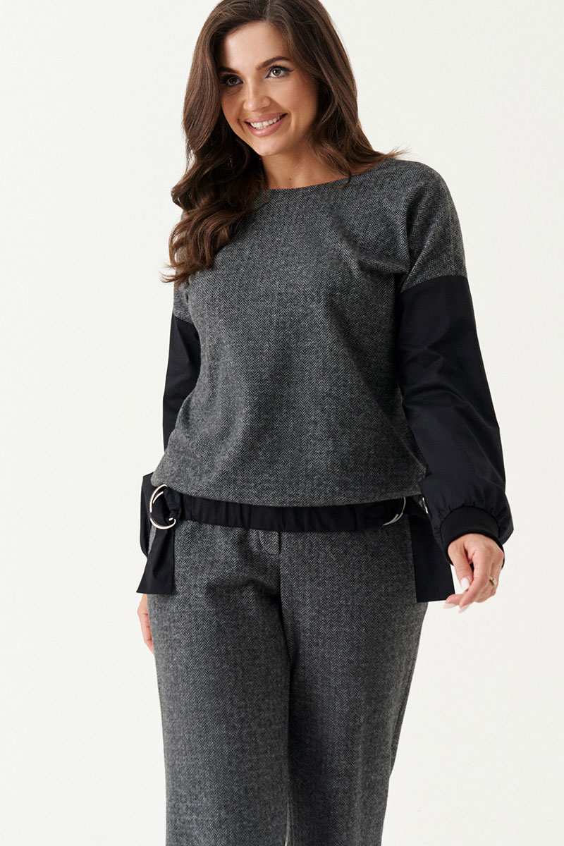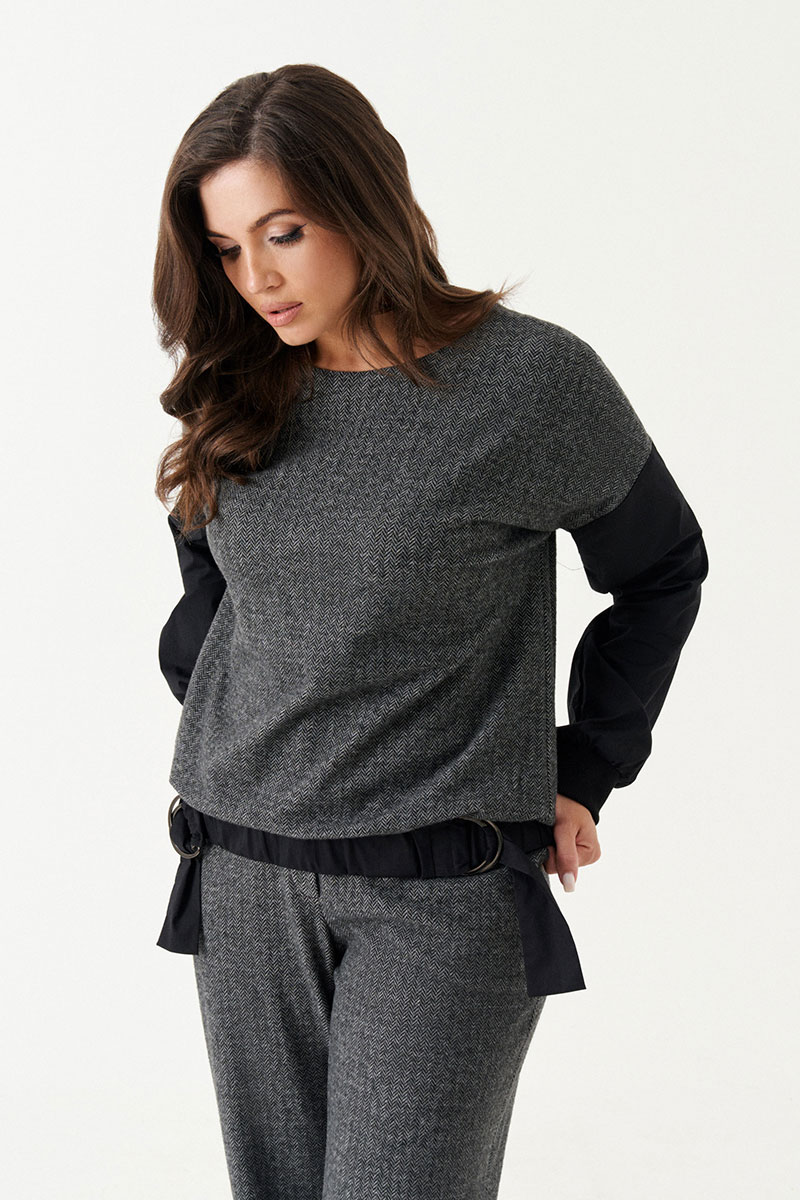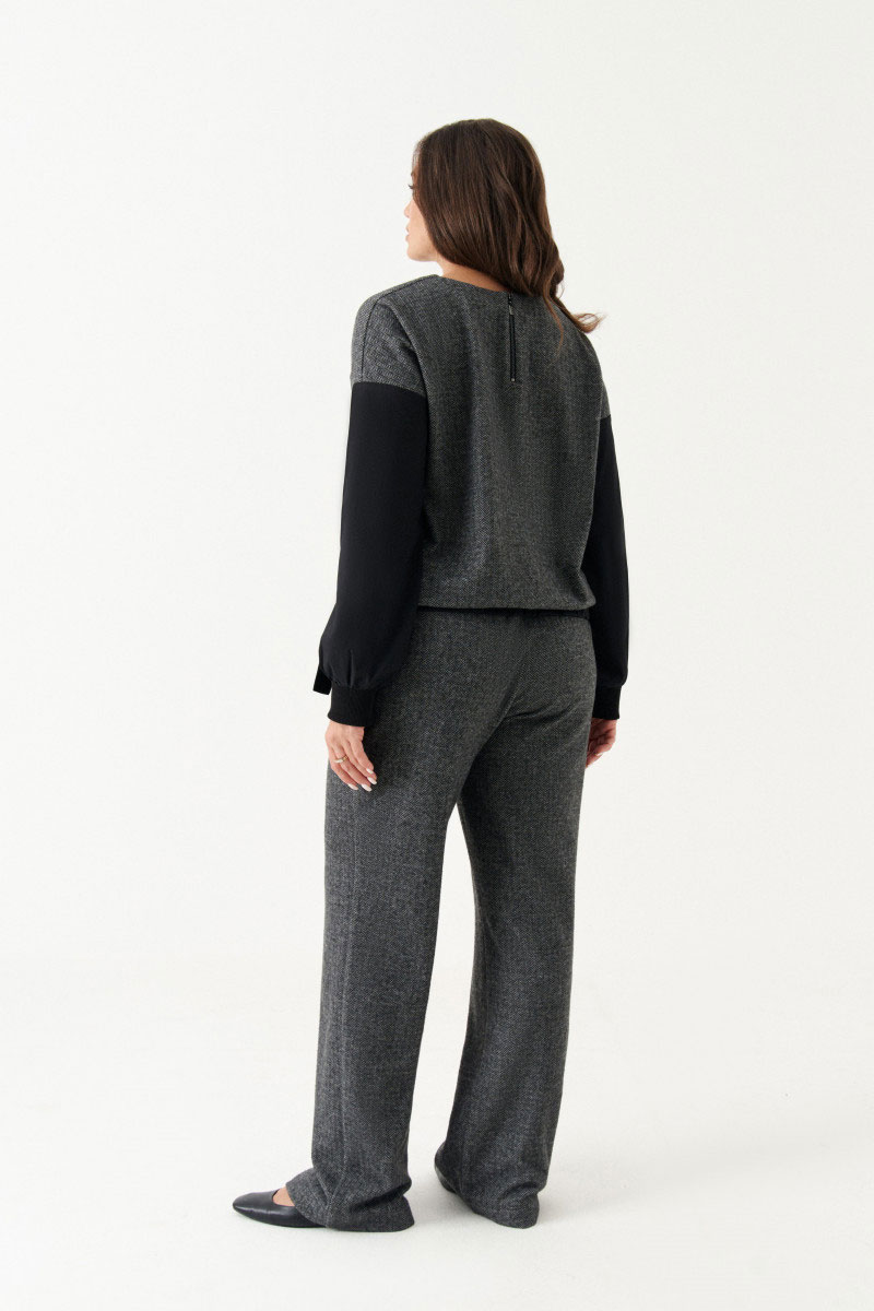 Джемпер женский из смесового трикотажного полотна для повседневной носки прямого силуэта. Нижний срез джемпера обработан притачным поясом на резинке. Спинка имеет застежку-молнию в среднем шве. Рукава спущенные, низ рукава обработан притачной манжетой на резинке. Джемпер комфортный в носке и приятный к телу.