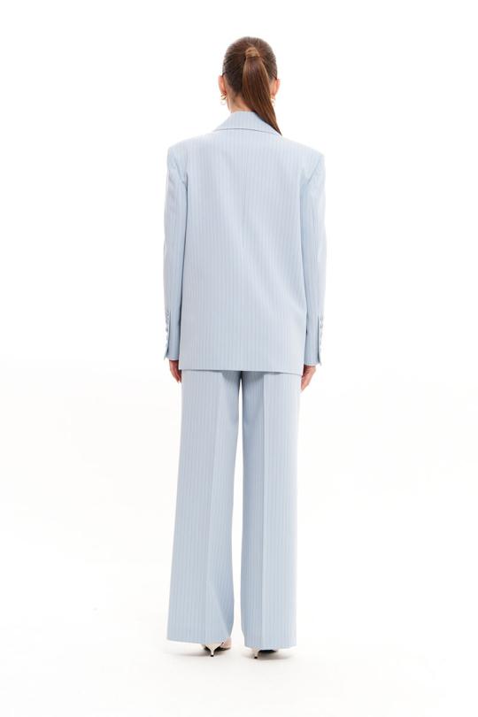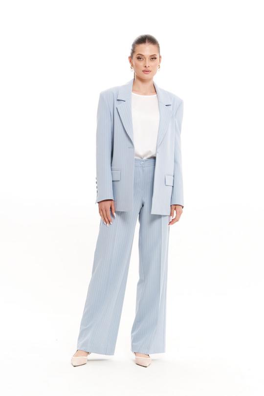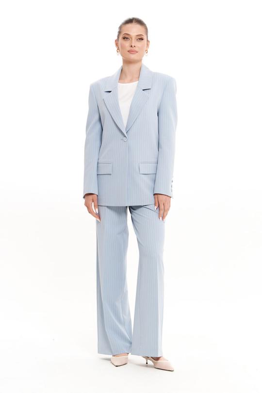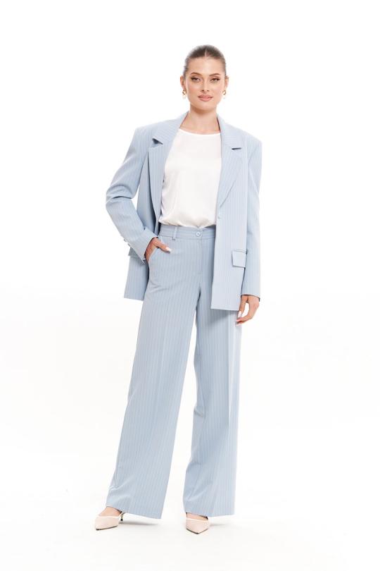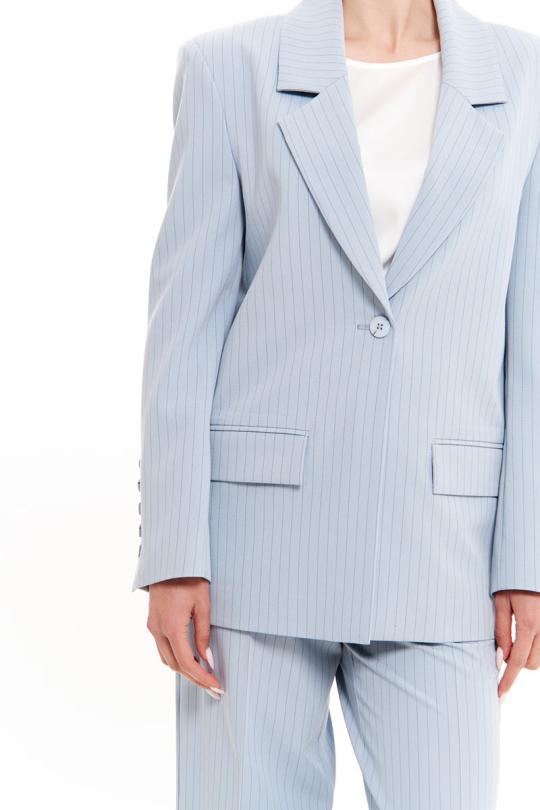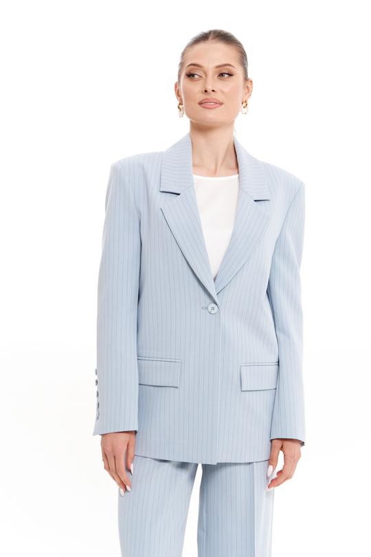 Жакет женский из смесовой ткани для повседневной носки на подкладке. Жакет прямого силуэта. Жакет с центральной бортовой застежкой на одну обметанную петлю и одну пуговицу. По переду располагается прорезной карман с клапаном и с двумя обтачками. Спинка со средним швом. Горловина обработана пиджачным воротником. Рукава двухшовные с шлицей по низу рукава, по шлице имеется пять пуговиц. Данное изделие в голубом оттенке станет отличным дополнением к любому гардеробу, и украсит ваш день. Жакет безусловно будет отлично сидеть и украшать любую фигуру.