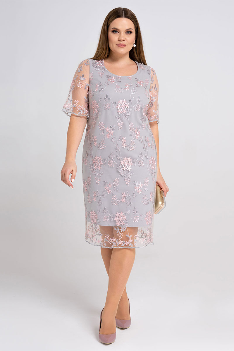 Элегантное нарядное двухслойное платье выполнено на сочетании двух тканей. Нарядная вышивка по сетке местами наклатывается на внутренний слой,а местами просвечивается,что выглядит очень женственно и привлекательно. Платье полуприлегающего силуэта с круглым вырезом горловины и втачными недлинными рукавами, расширенными книзу.Низ платья и рукавов оформлен в виде подогнутой вовнутрь каймы. Универсальное нарядное, элегантное платье подойдёт для любого торжественного случая стильной и яркой девушке.