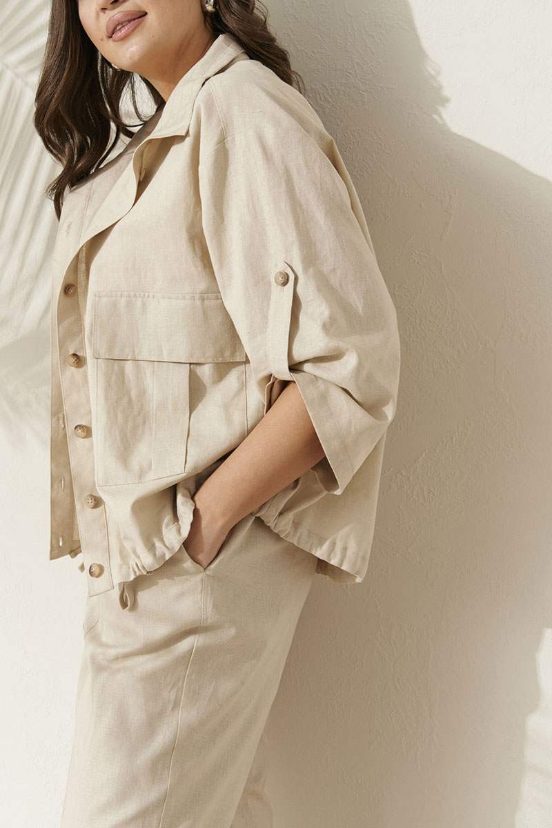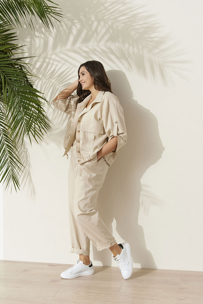 Комплект женский из льняной ткани с добавлением хлопка для повседневной носки. Комплект состоит из жакета и брюк.