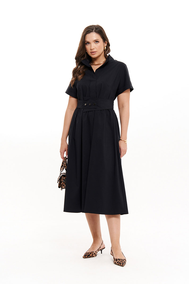 Платье женское из смесовой ткани для повседневной носки. Платье, расширенное к низу, а также отрезное по линии талии и имеет сборку. Перед имеет две нагрудные вытачки. В боковом шве имеются потайные прорезные карманы. Горловина обработана втачной планкой и стойкой. Рукава цельнокроеные, низ рукава обработан отлетной манжетой, длинна рукава чуть выше локтя. Длинна платья макси. Для придания формы в области талии имеется пояс из основной ткани с застежкой на кнопки. В платье имеются по планке декоративные закрепки. Платье элегантного василькового цвета, в котором вы будете выглядеть очень привлекательно. За счет большого содержания хлопка в платье, ваша кожа будет чувствовать себя комфортно. Красивое и элегантное платье в котором вы будете выглядеть неотразимо.