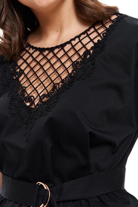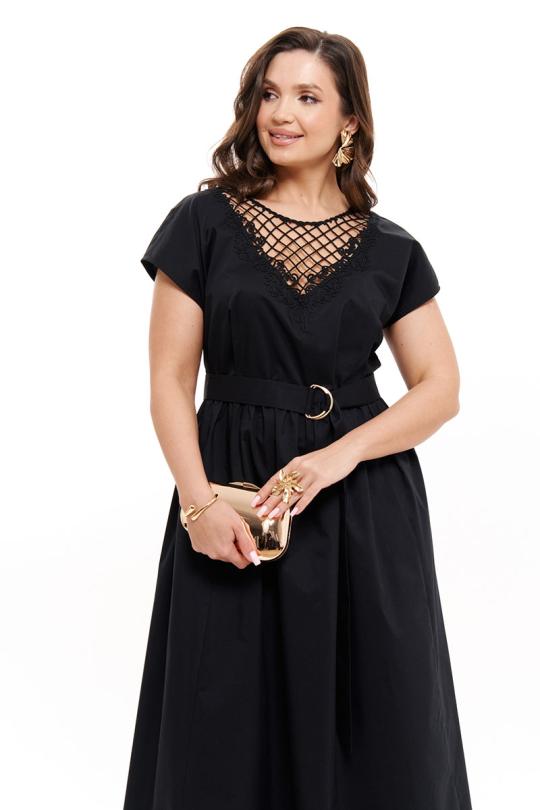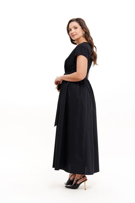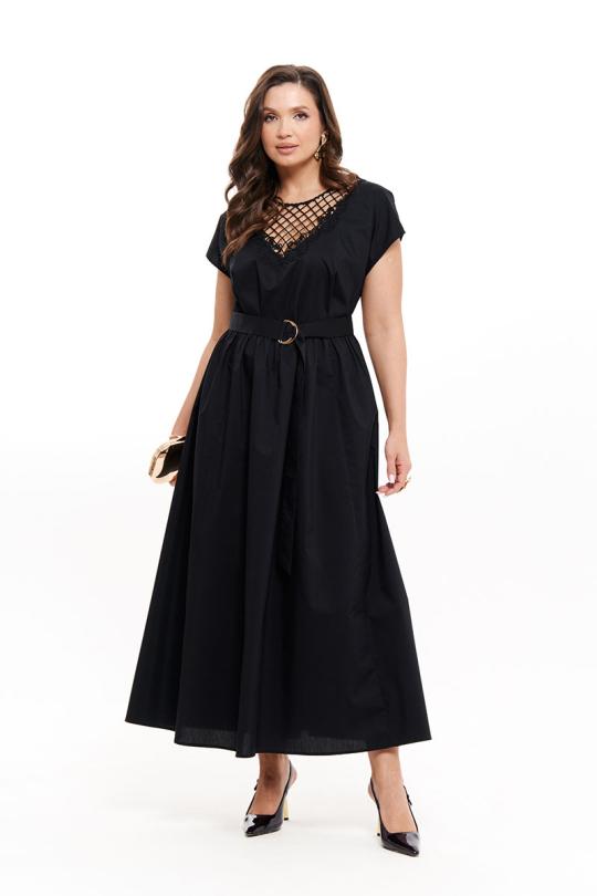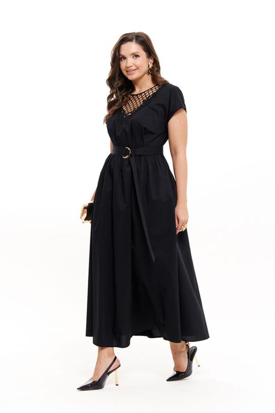 Платье женское из хлопчатобумажной ткани прямого силуэта для повседневной носки. Платье отрезное по линии талии со сборкой. Лиф переда имеет два защипа по талии. Переднее полотнище юбки имеет два рельефа идущих от линии талии до низа изделия. Лиф спинки со средним швом и двумя талиевыми вытачками, а также имеется застежка-капелька на пуговицу. Заднее полотнище юбки имеет два рельефа идущих от линии талии до низа изделия. Горловина V-образная с декоративной дизайнерской вышивкой шнуром. Рукава цельнокроеные короткие. С платьем идёт пояс из основной ткани, застёгивающийся на пряжку-полукольца. Длина изделия макси. Очень красивое платье, которое обязательно будет восхитительно смотреться и подчеркивать вашу фигуру.