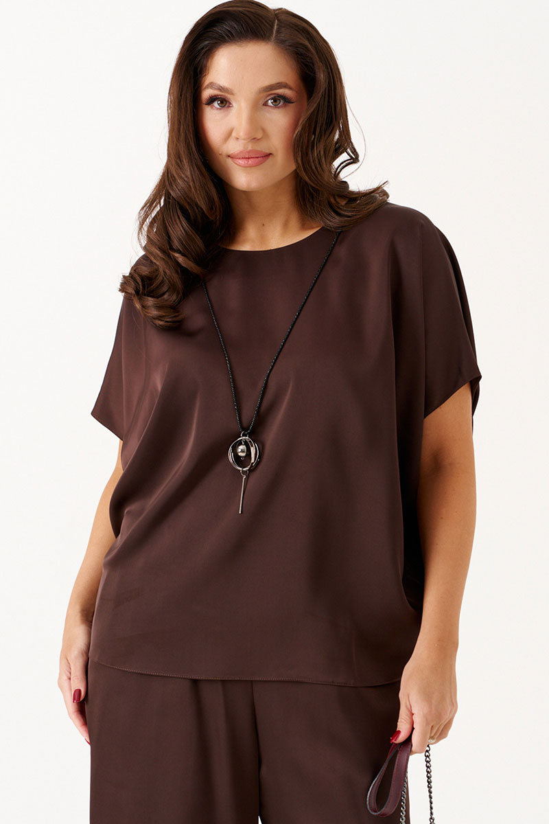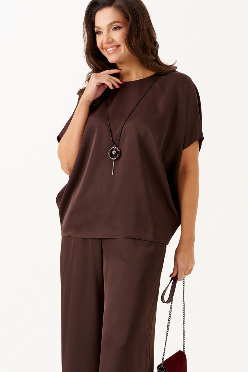 Костюм женский брючный двойка из Беларуси — идеальный выбор для создания модного и стильного образа на каждый день и особые случаи. Нарядный комплект состоит из свободной блузки и прямых брюк.