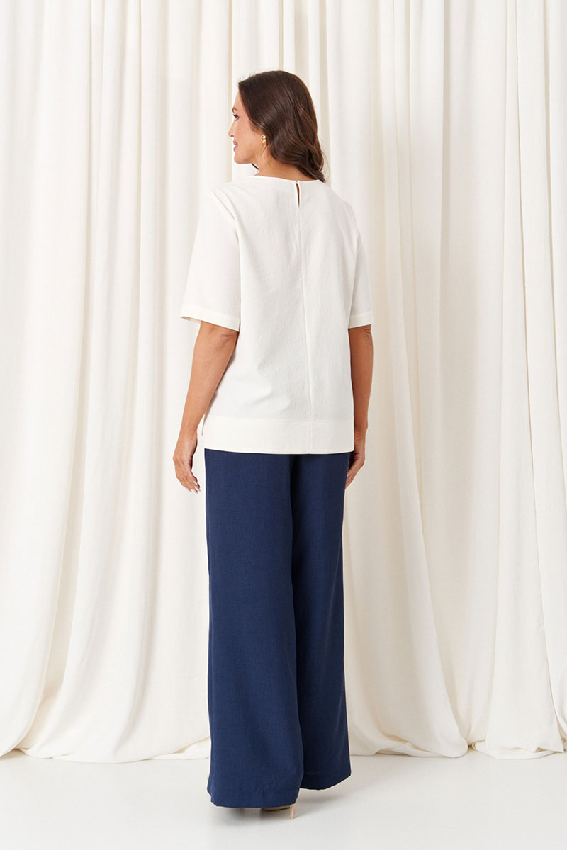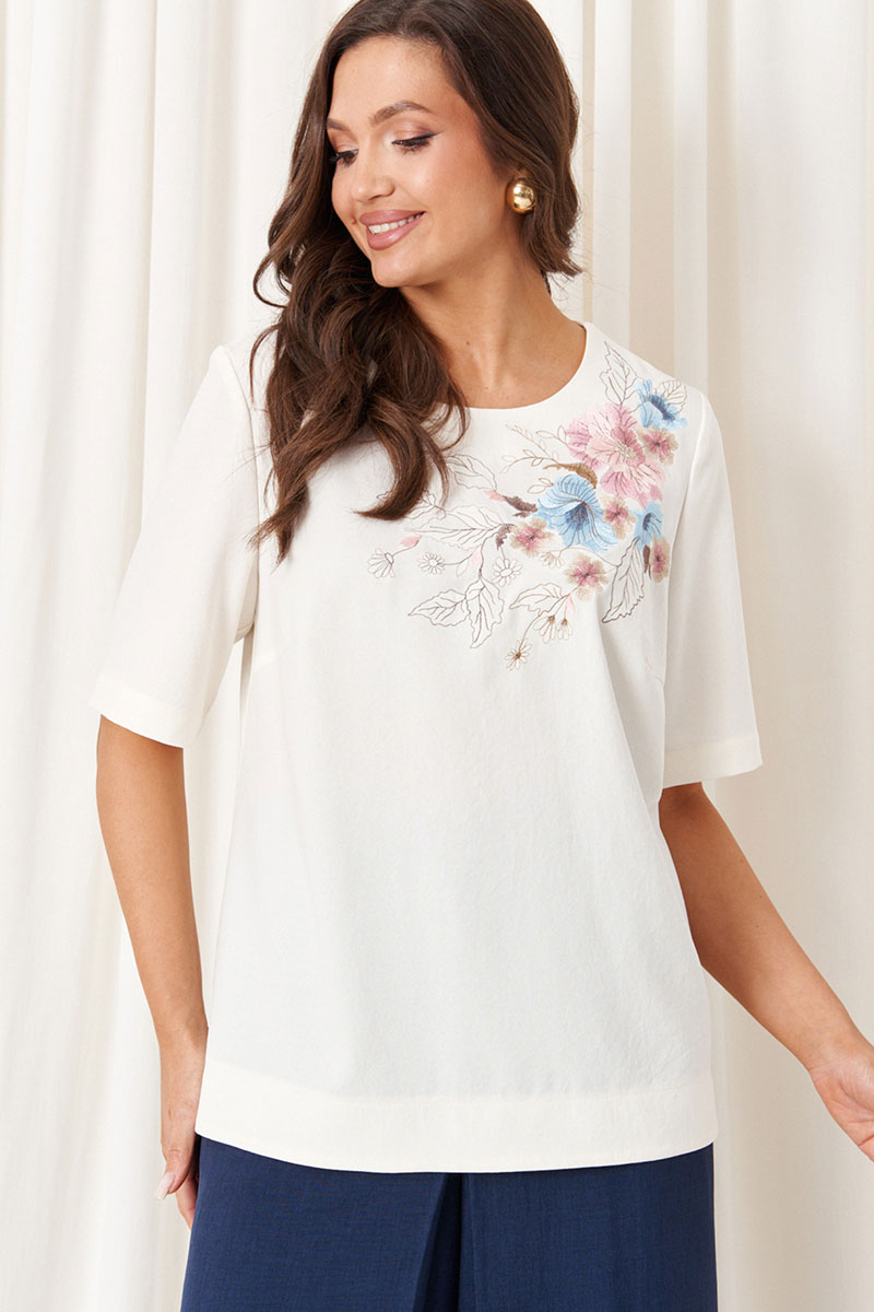 блузки украшена средним швом и застежкой «капелька», а небольшие разрезы в боковых швах добавляют удобства при движении.