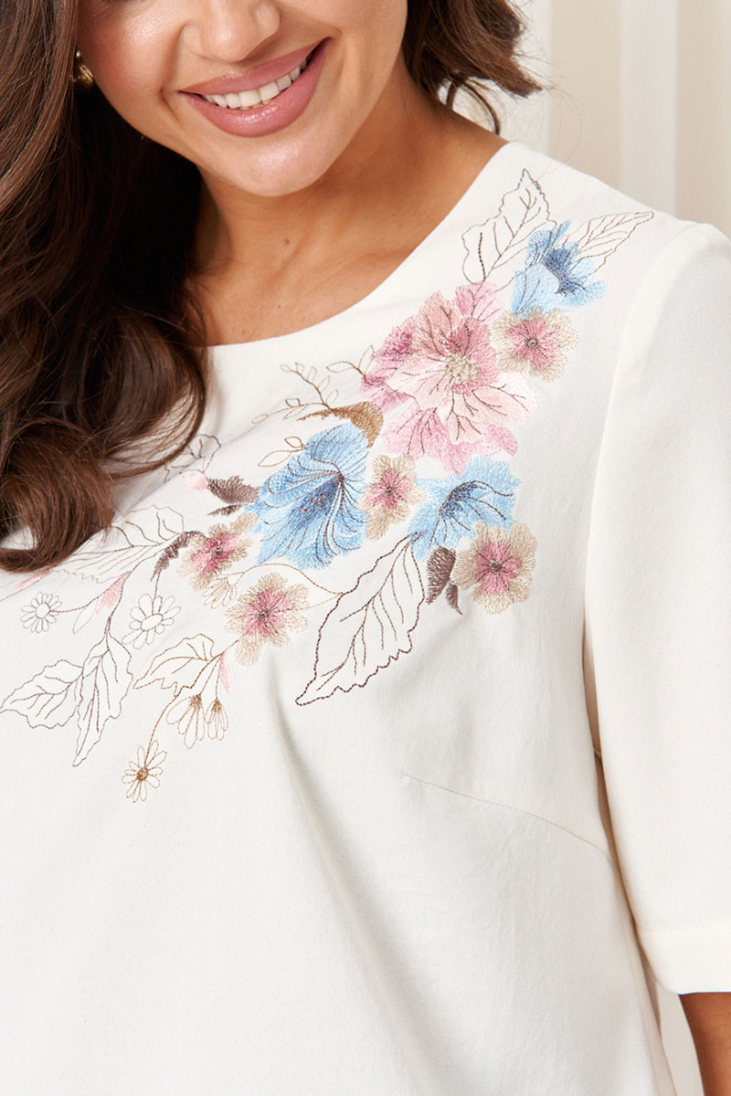 свободного пространства, при этом две нагрудные вытачки создают аккуратную посадку по фигуре. Декоративная вышивка в виде бус придает изделию утонченность и оригинальность. Спинка