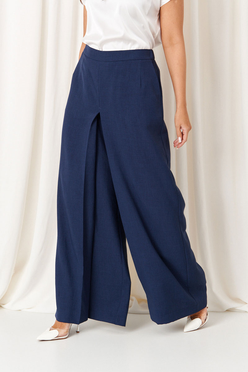 сочетает аккуратный внешний вид с комфортом в носке. Практичный карман в боковом шве с подкройным бочком и застежка на молнию и пуговицу завершают образ.