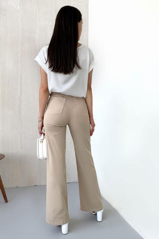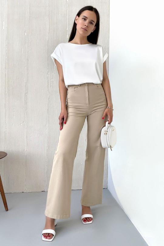 Создать стильный, свободный образ помогут хлопковые брюки. Брюки расширенные от бедра, с отрезным поясом на петлю пуговицу, застежка на тесьму- молнию, По переду два боковых кармана. На задних частях брюк кокетка от пояса и два настрочных кармана фигурной формы. Брюки удачно сочетаются со спортивной обувью, лоферами так и с туфлями на каблуке.