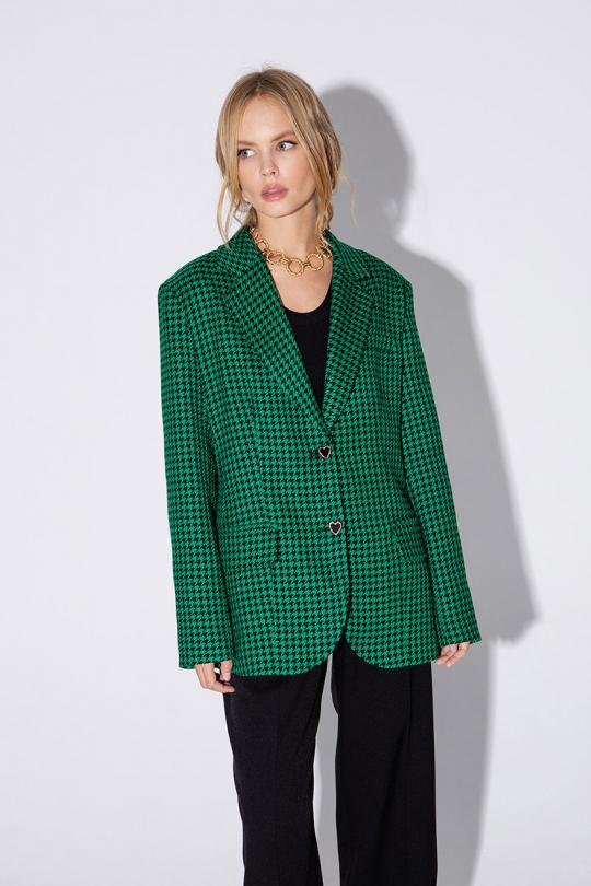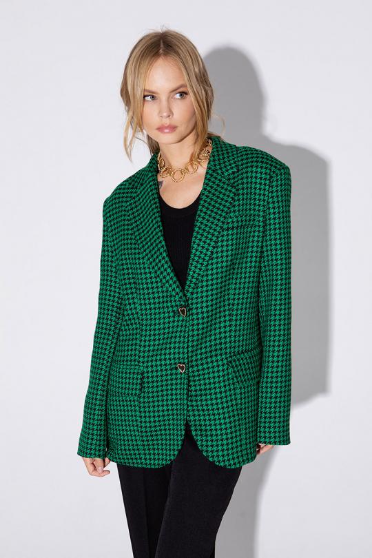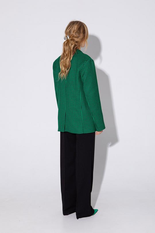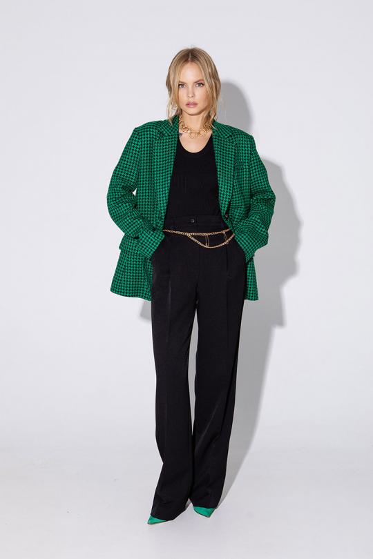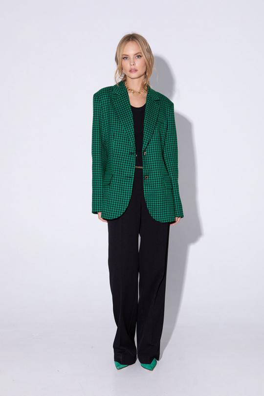 Комплект-двойка из оверсайз жакета с принтом и прямых брюк-палаццо со стрелками.