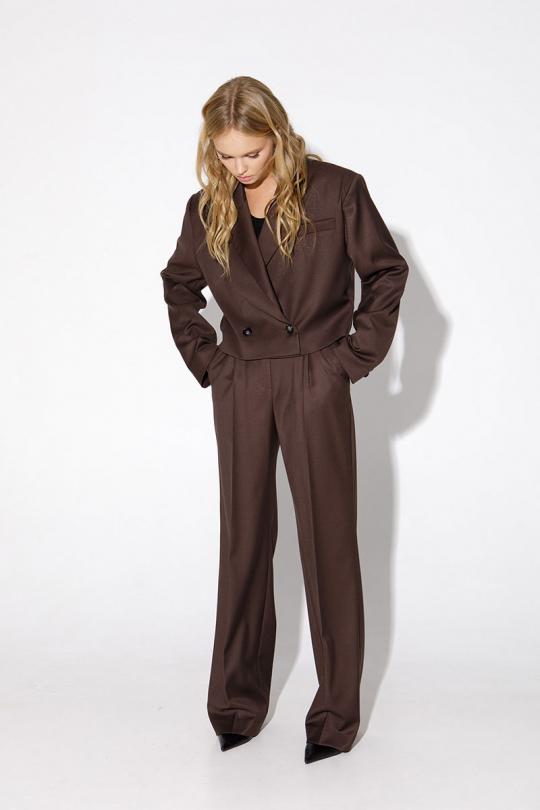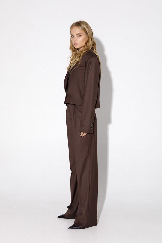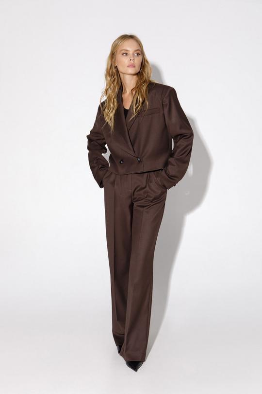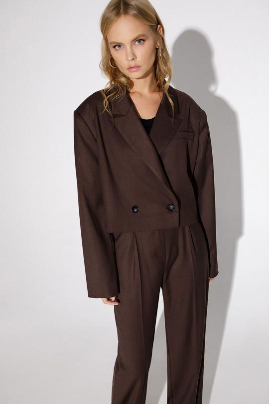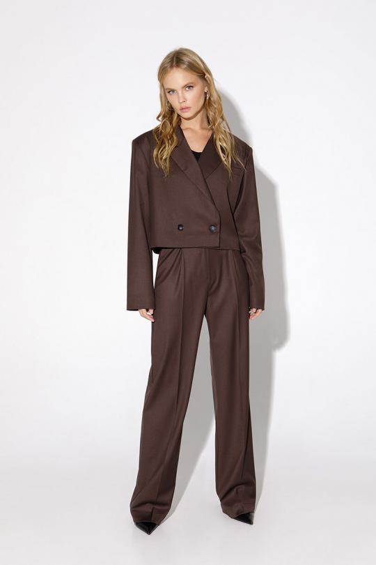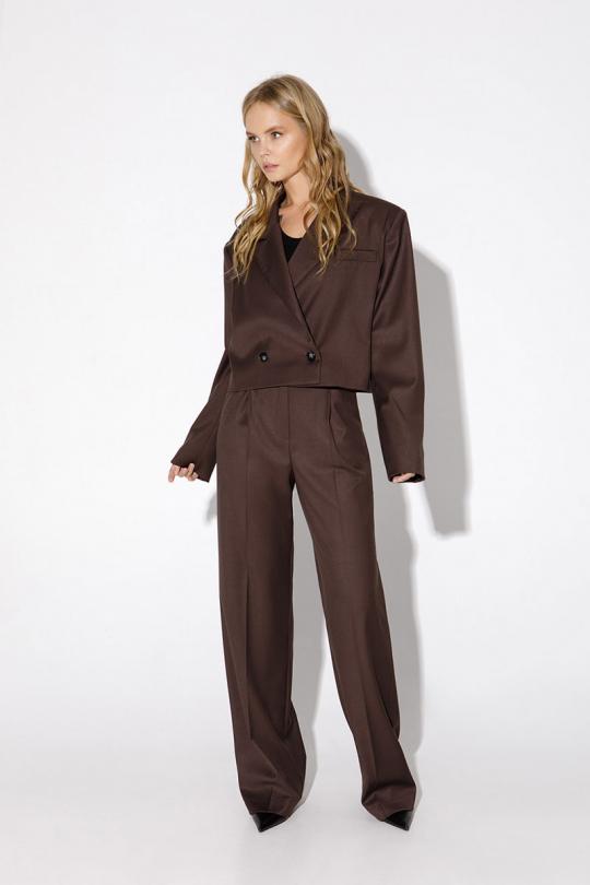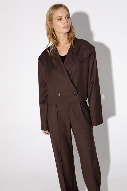 Костюм-двойка из укороченного оверсайз жакета с расширенными плечами и широких брюк- палаццо.