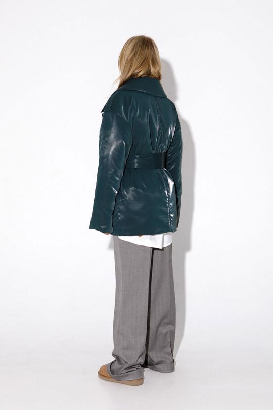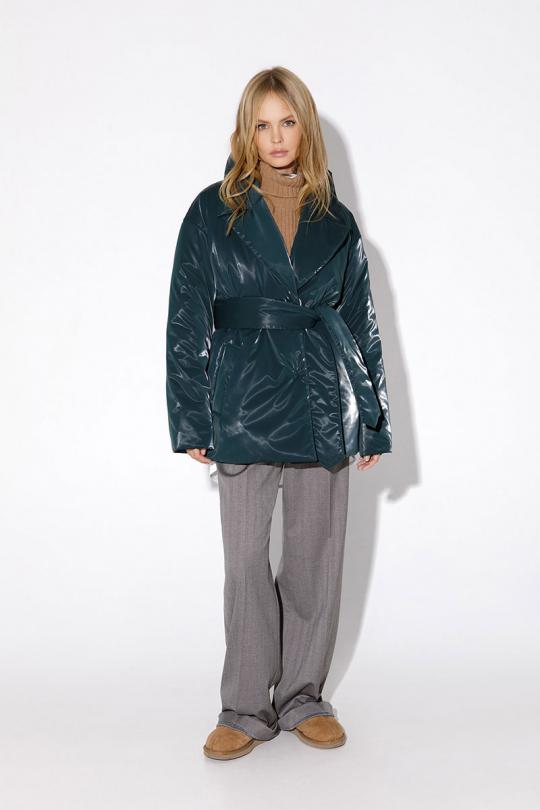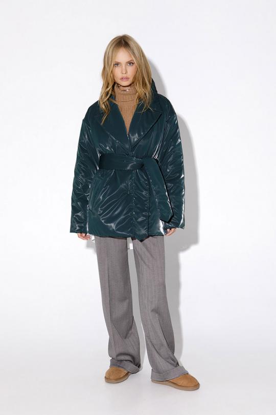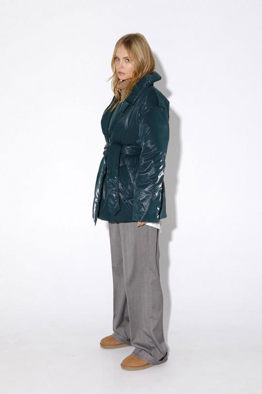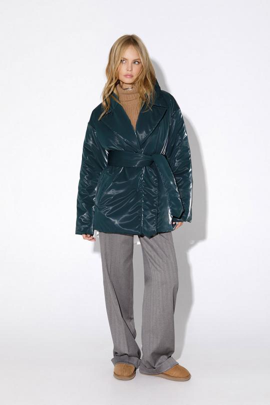 Утепленная куртка свободного покроя из плащевой водонепроницаемой ткани с бархатным эффектом. Детали: полуприлегающий силуэт, пиджачный воротник, спущенная линия плеча, функциональные карманы, застежка на кнопки, рукава длинные, съемный широкий пояс, куртка на подкладке.