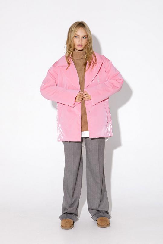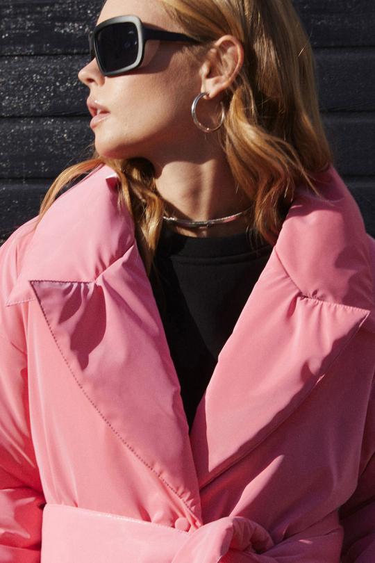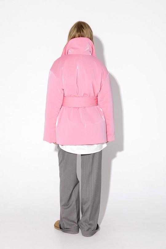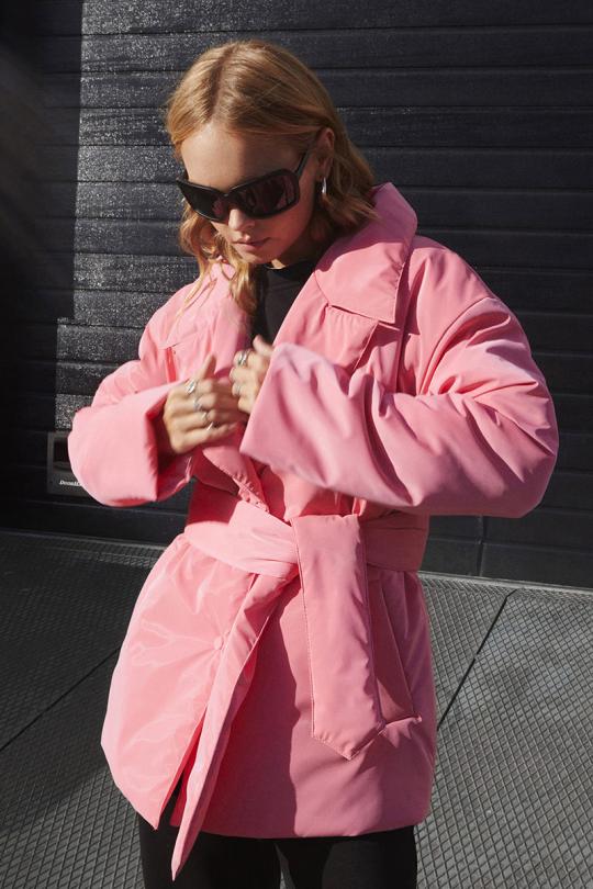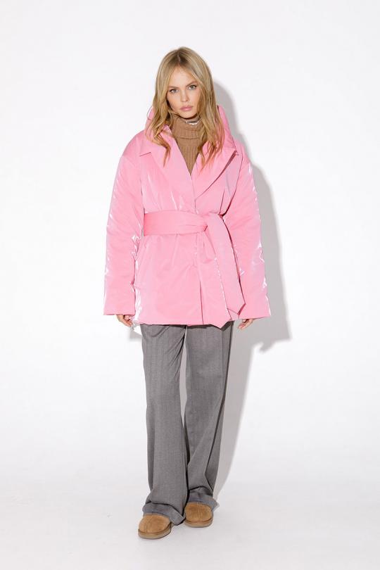 Утепленная куртка свободного покроя из плащевой водонепроницаемой ткани с бархатным эффектом. Детали: полуприлегающий силуэт, пиджачный воротник, спущенная линия плеча, функциональные карманы, застежка на кнопки, рукава длинные, съемный широкий пояс, куртка на подкладке.