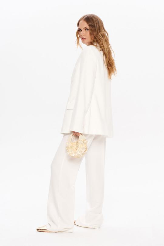Детали: жакет свободного покроя и полуприлегающего силуэта, двубортная застежка на петли и пуговицы, отрезные бочки, пиджачный воротник, функциональные карманы, жакет на подкладке.