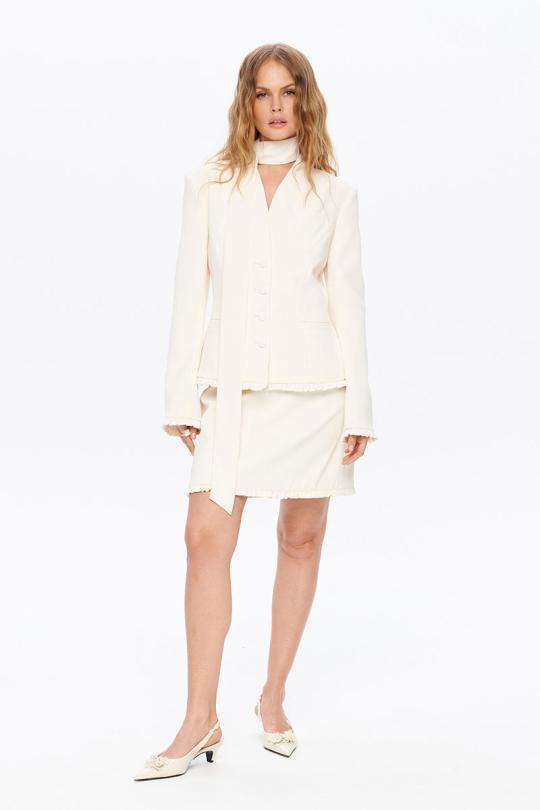 Приталенный жакет с оборками и съемным шарфиком.