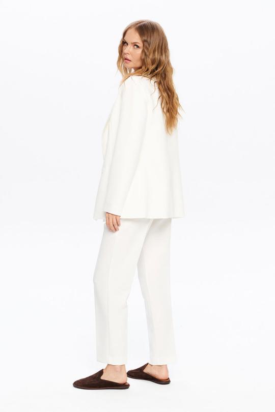 Детали: жакет прямого силуэта, пиджачный воротник, перед с прорезными карманами, застежка на петли и пуговицы, спинка со средним швом, рукава втачные двухшовные, жакет на подкладке.