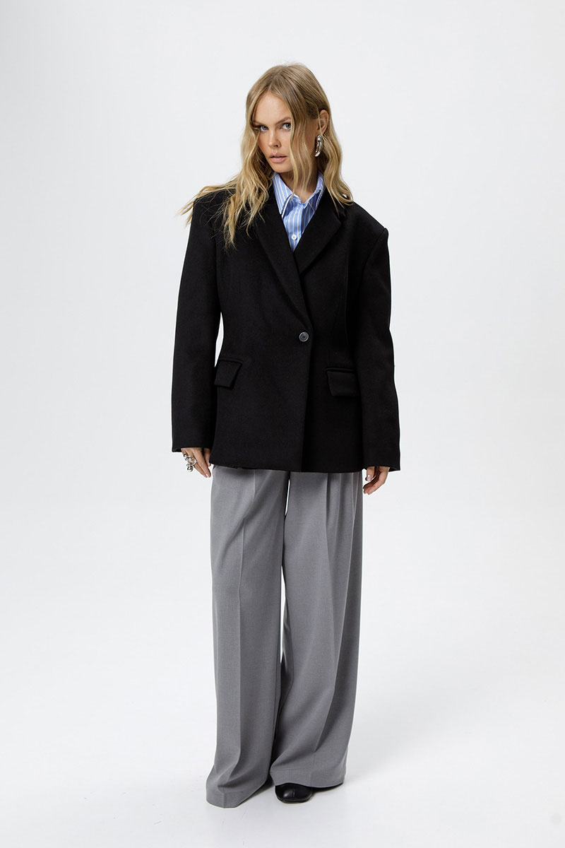 - Состав: шерсть 50%; ПЭ 50%; подкладка: ПЭ 55%; вискоза 45%