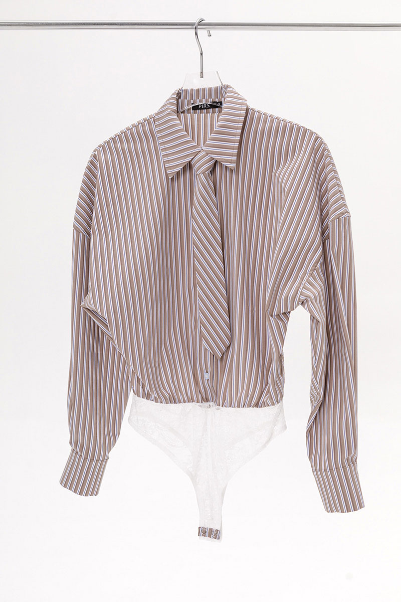 Хлопковая рубашка-боди с кружевными трусиками. Галстук входит в комплект.