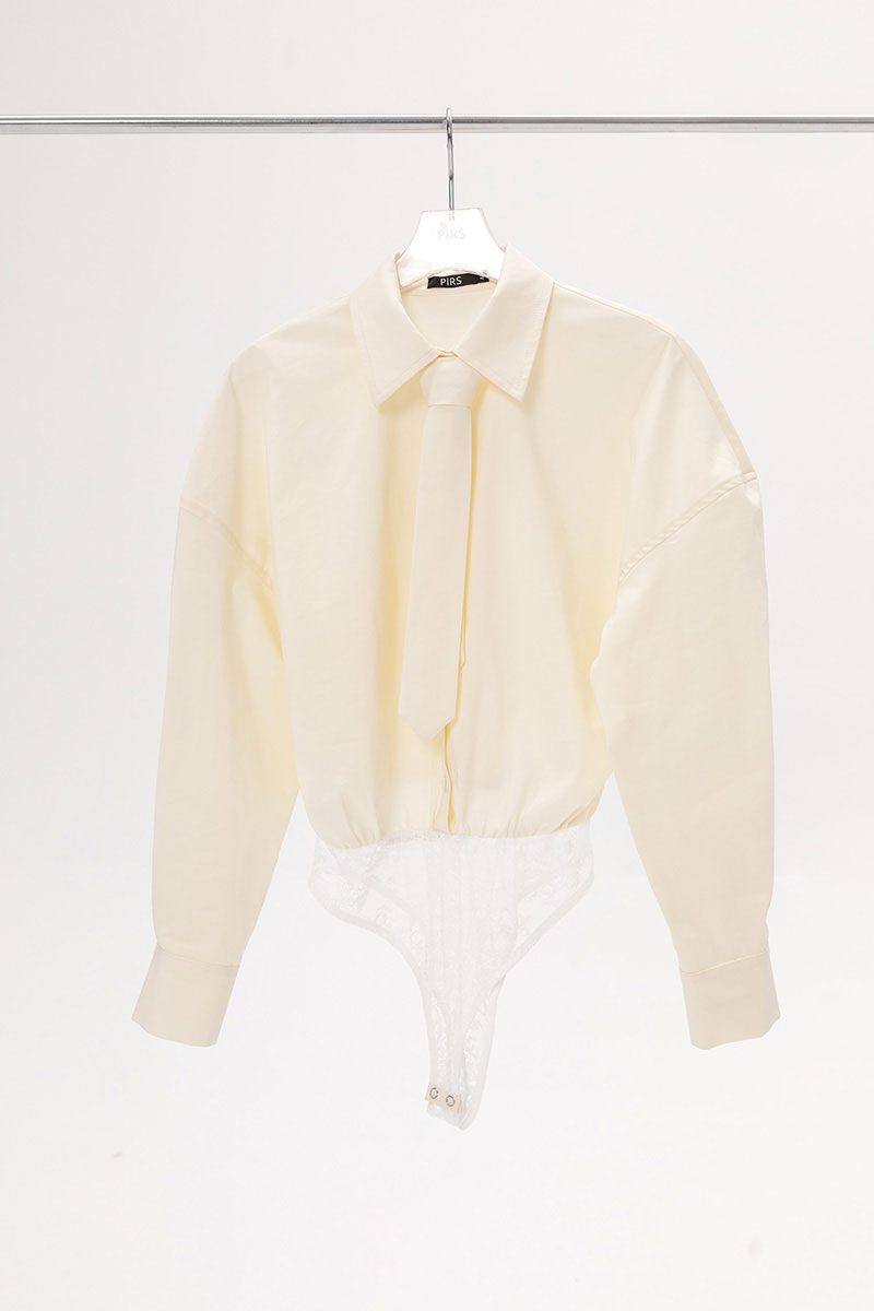 Хлопковая рубашка-боди с кружевными трусиками. Галстук входит в комплект.