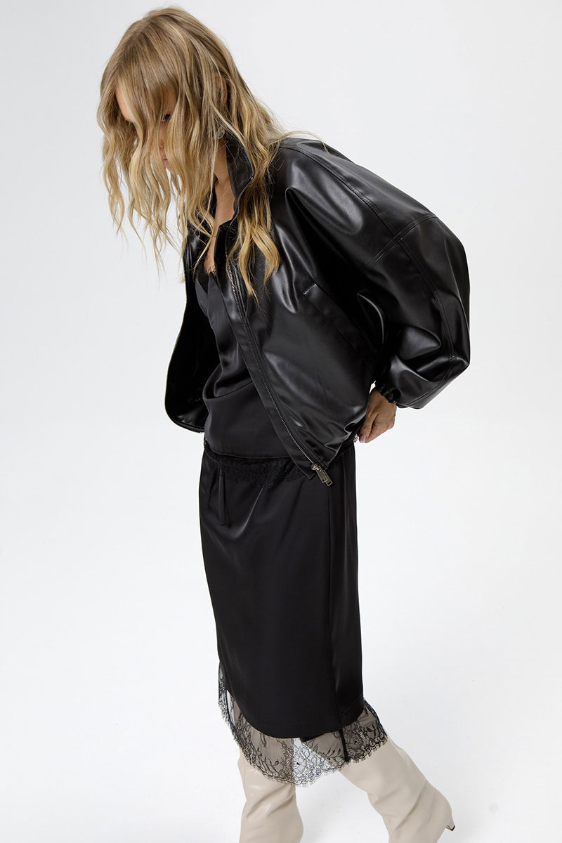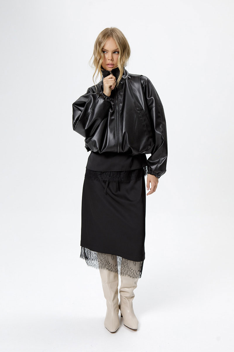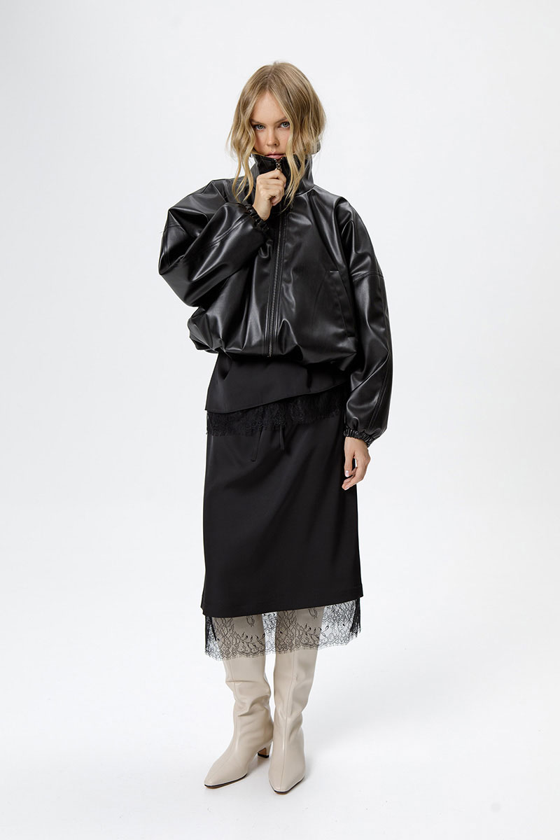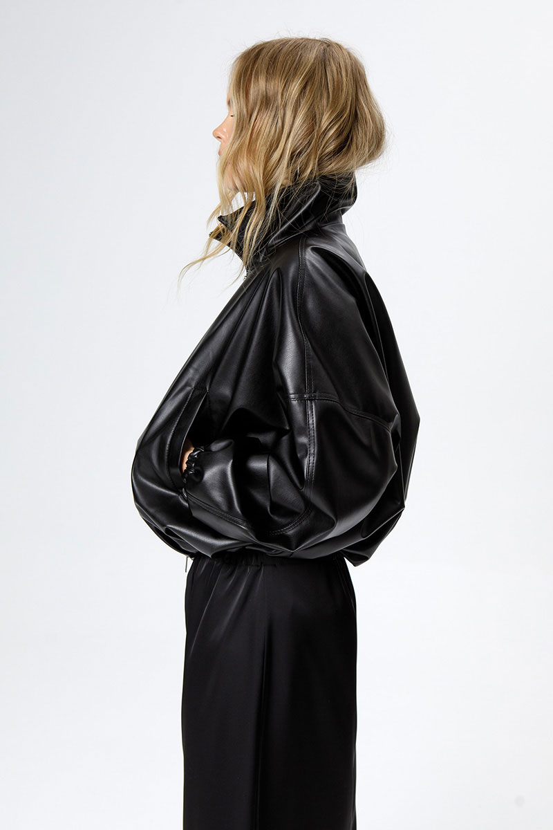 Детали: О-силуэт, расширенное плечо, высокий воротник стойка, пояс бомбера и манжеты на резинке, застёжка на молнию, функциональные карманы, куртка на подкладке.